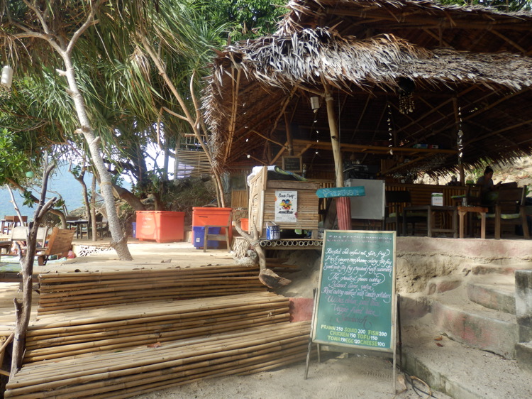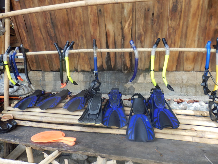 Vorne am Restaurant wartet eine große Liegefläche auf Hungrige, Faulenzer oder Sonnenanbeter. Das Riff davor bietet ein kleines Korallenriff, nicht mehr unberührt. aber noch schön. Schnorchelequipment für Gäste kostenlos.