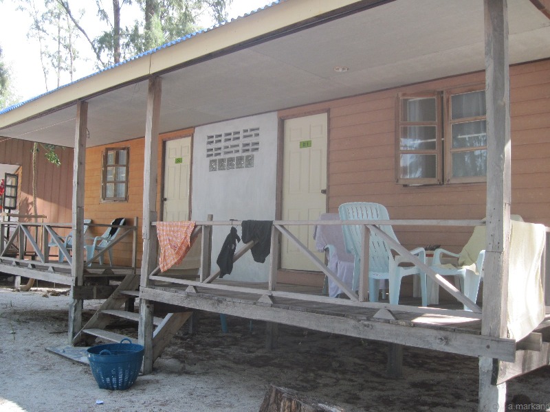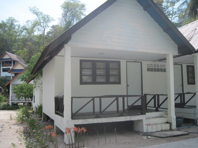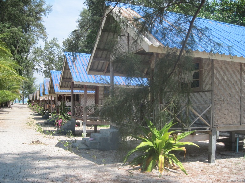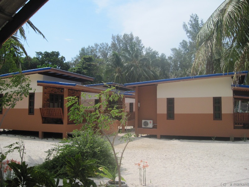 Daneben bessere neuere Holzbungalows und direkt am Restaurant die ersten großen Steinhäuser mit AC.