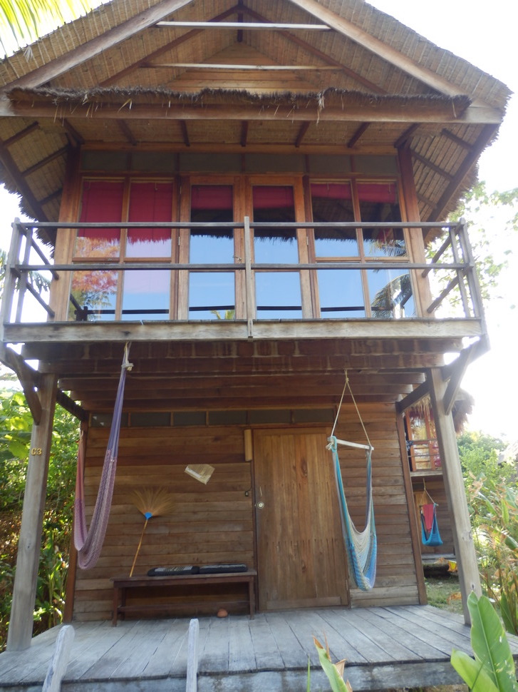 Es gibt ein- und zweistöckige Häuser. Alle haben Hängematten.