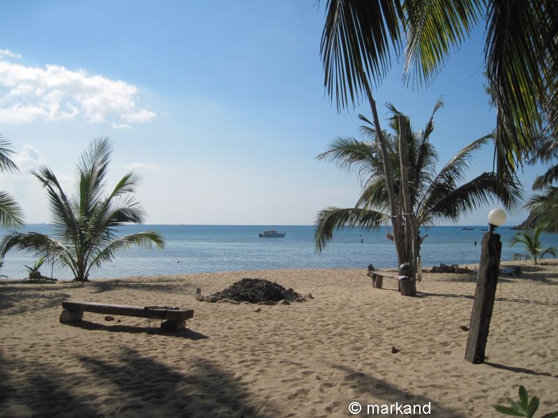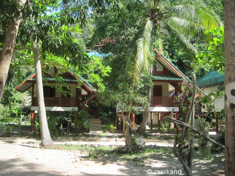 Die Häuschen hinten ab 850 Baht mit Ventilator. Bis 2500 Baht vorne am Strand.