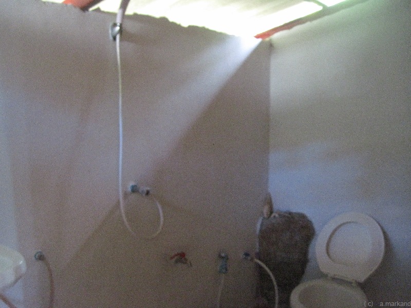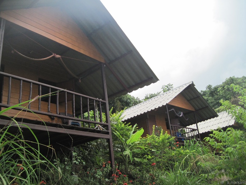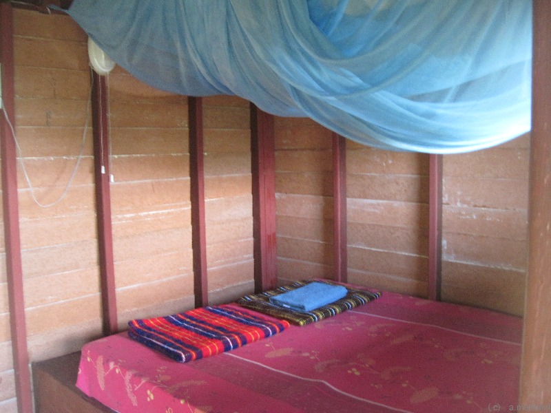 Am Hügel mit Blick aufs Meer stehen geäumige Holzbungalows mit einfacher Ausstattung.