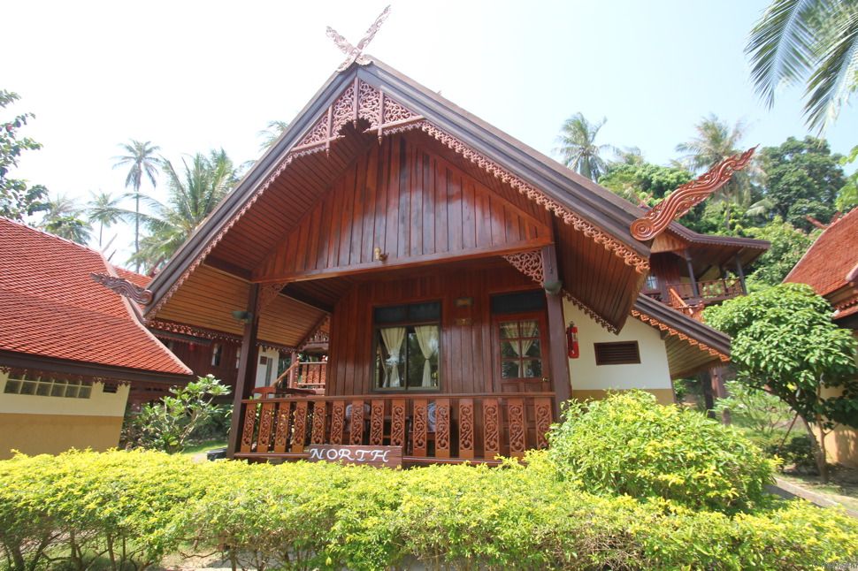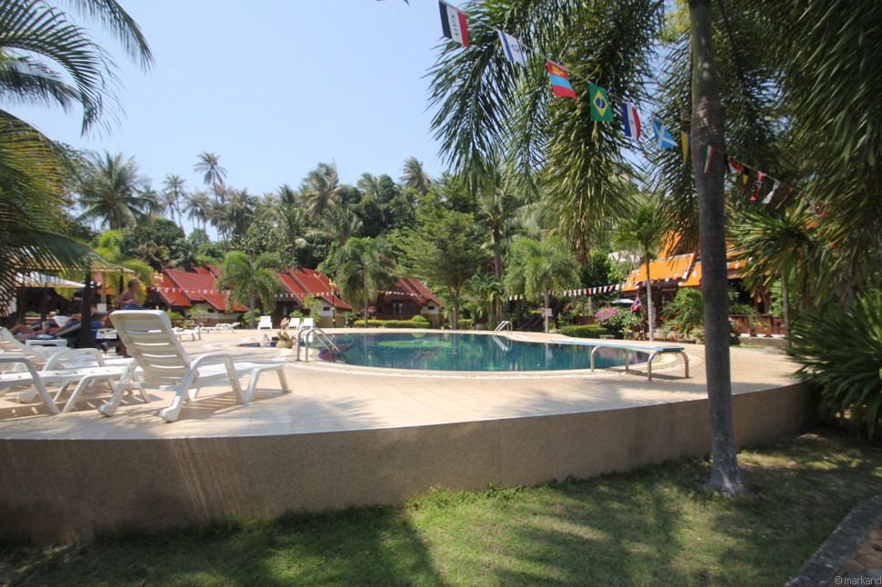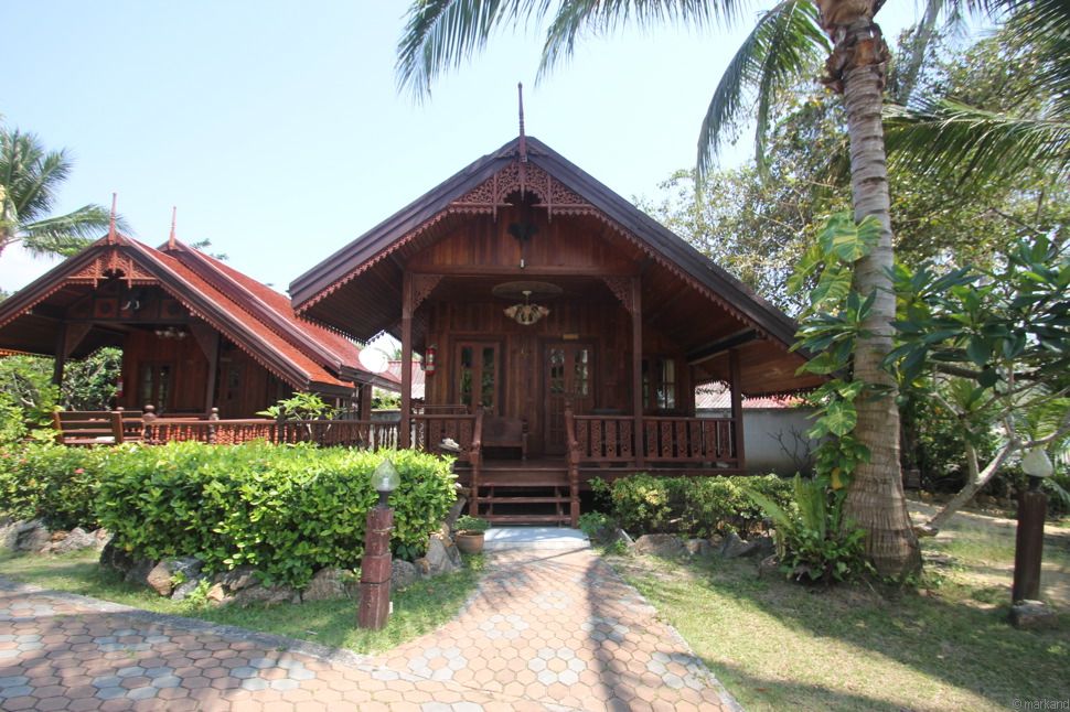 Großer Hotelkomplex und Holzbungalows im Thai-Stil. TV, Minibar, Pool und Internet.