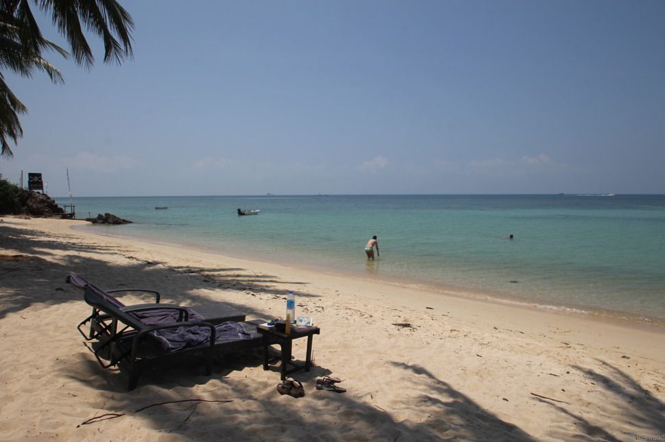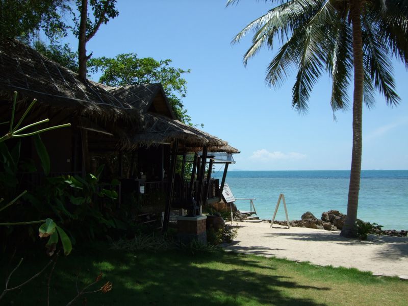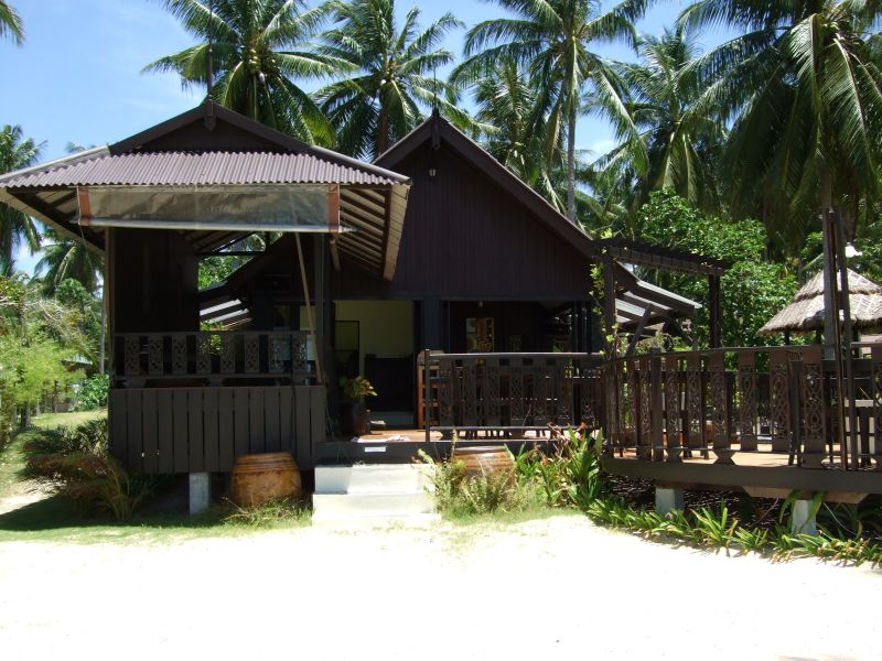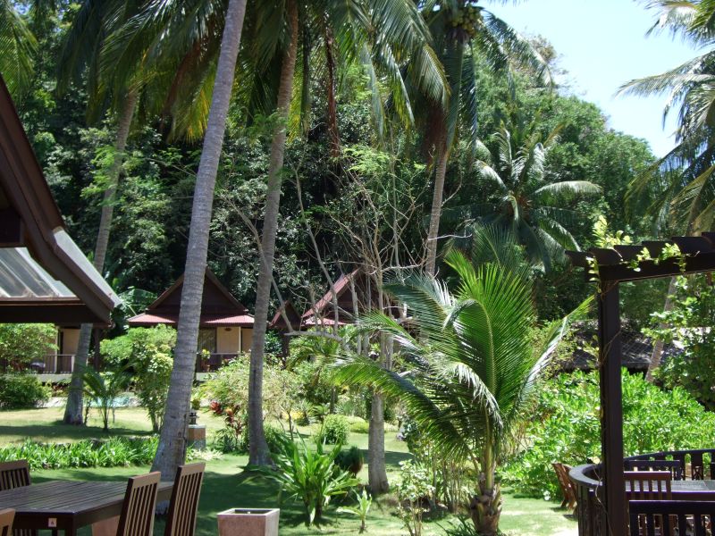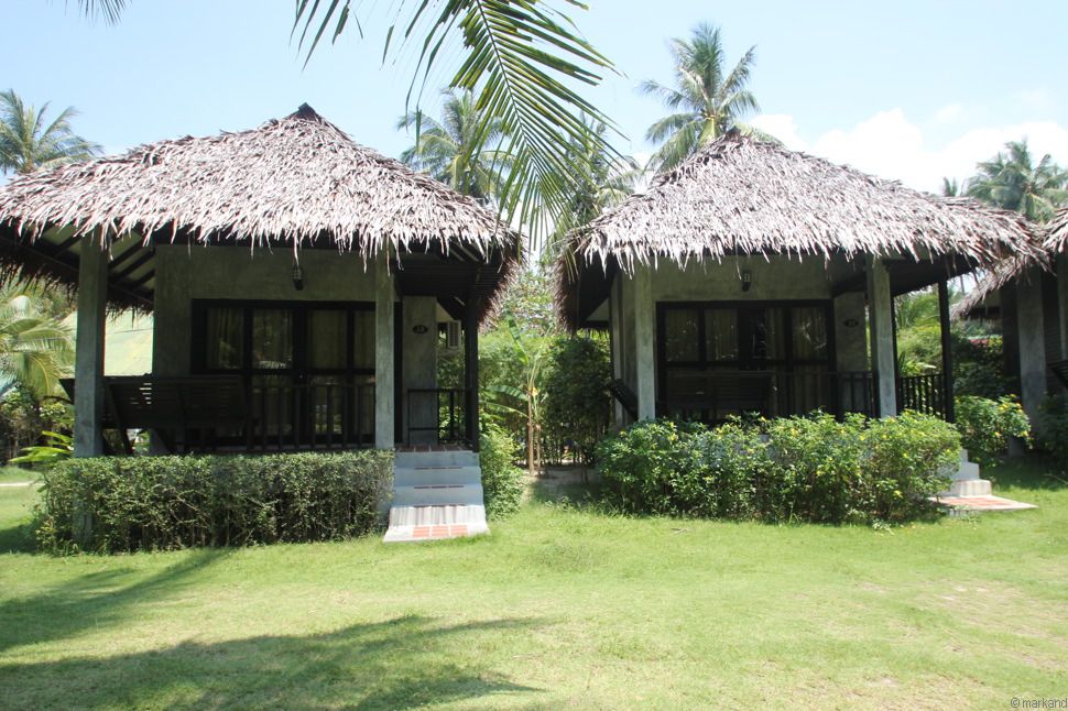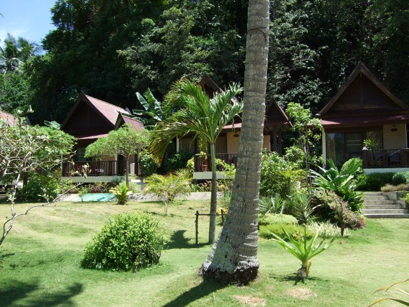 Locker um einen großen Garten mit Blick Richtung Meer gruppieren sich geräumige Steinbungalows. Verwahrlost immer mehr. Ein paar Bungalows sind belegt, aber es sind eher Longtermer, die hier unterkommen.
