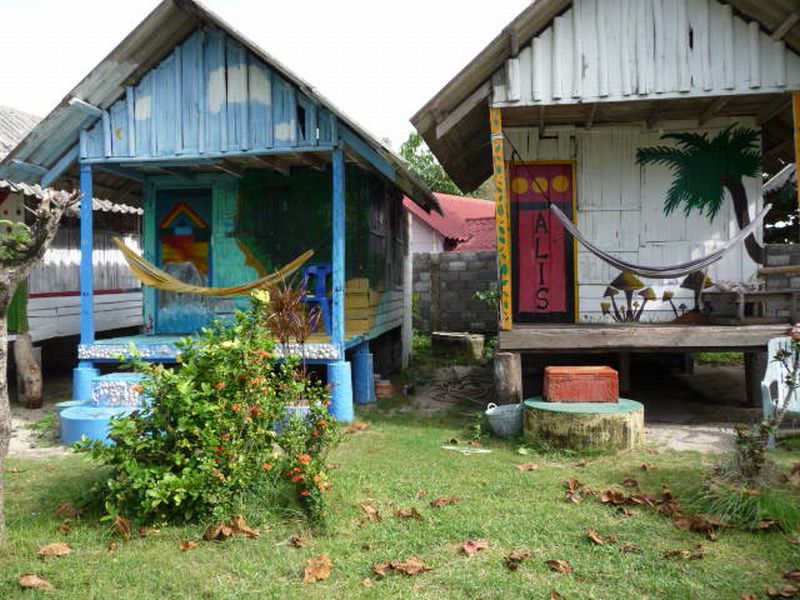 Einfaches Resort mit günstigen, verwohnten Hütten.