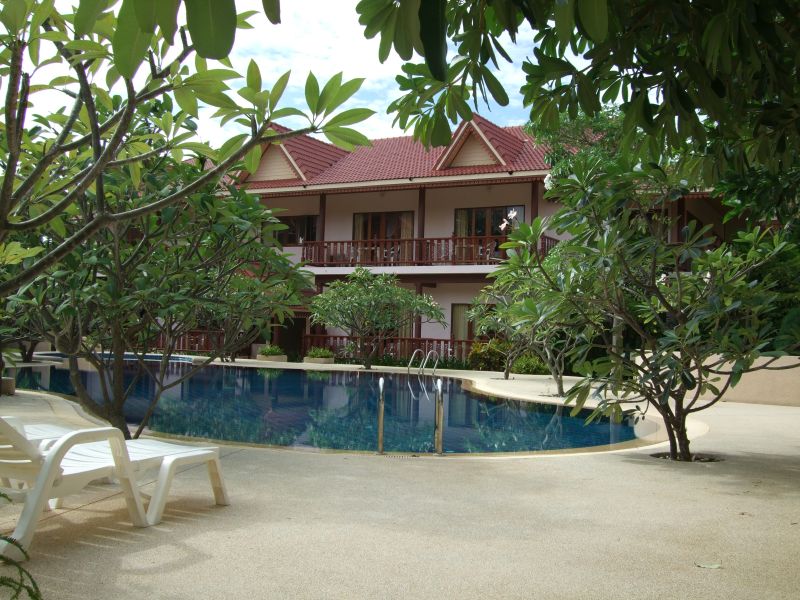 Vorne um den Pool kleine ansprechende Bungalows, ebenfalls gut ausgestattet und mit AC.