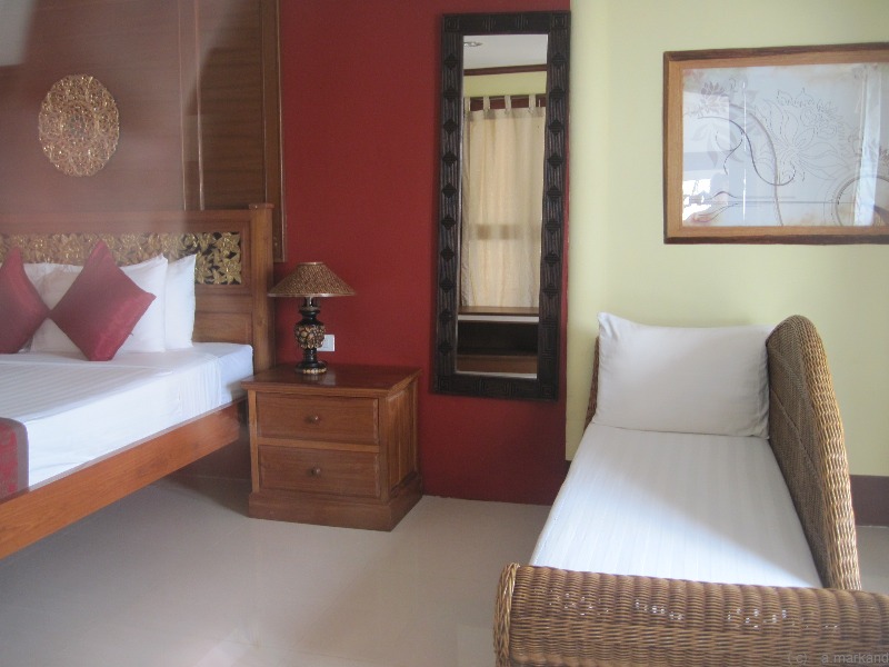 Die meisten Zimmer befinden sích in den 2-geschossigen Häusern, einige mit Badewanne, Safe, TV, AC.