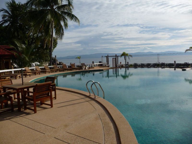 Schöner Blick vom Pool aufs Meer. Kinderrutsche. Nichtgäste zahlen 200 Baht.