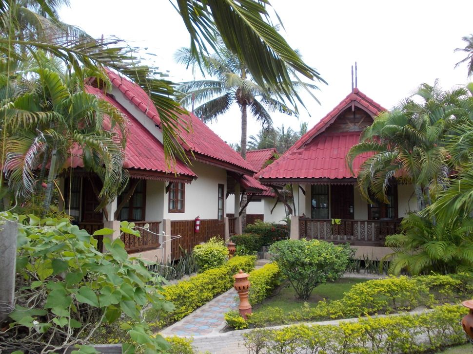 Große weitläufige Anlage mit zahlreichen gut ausgestatteten Steinbungalows im Garten, einige direkt am Strand oder am Pool.