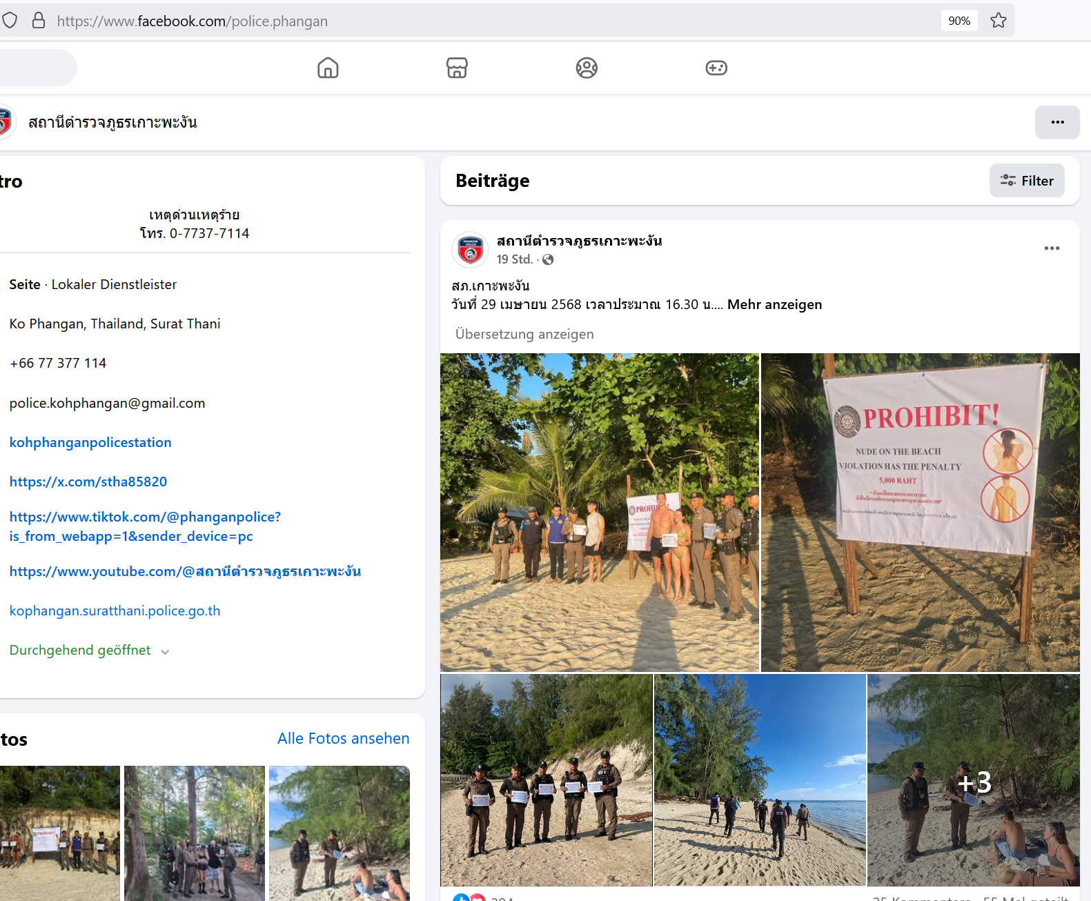 Foto: Screenshot der Facebookseite mit Fotos der Ankündigung der örtlichen Polizei. https://www.facebook.com/police.phangan