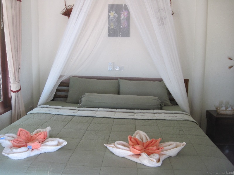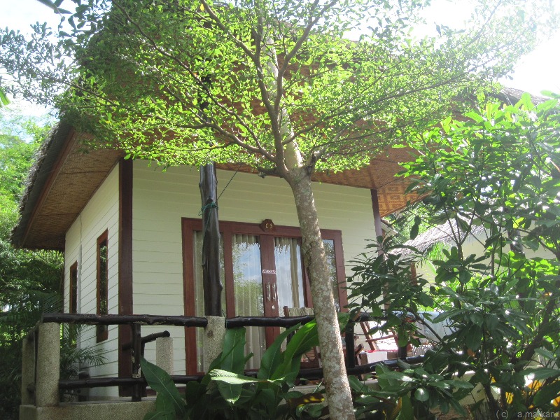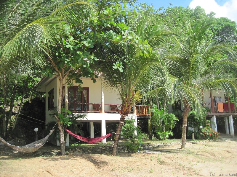 Im Hang stehen gute große Steinbungalows, alle mit AC.