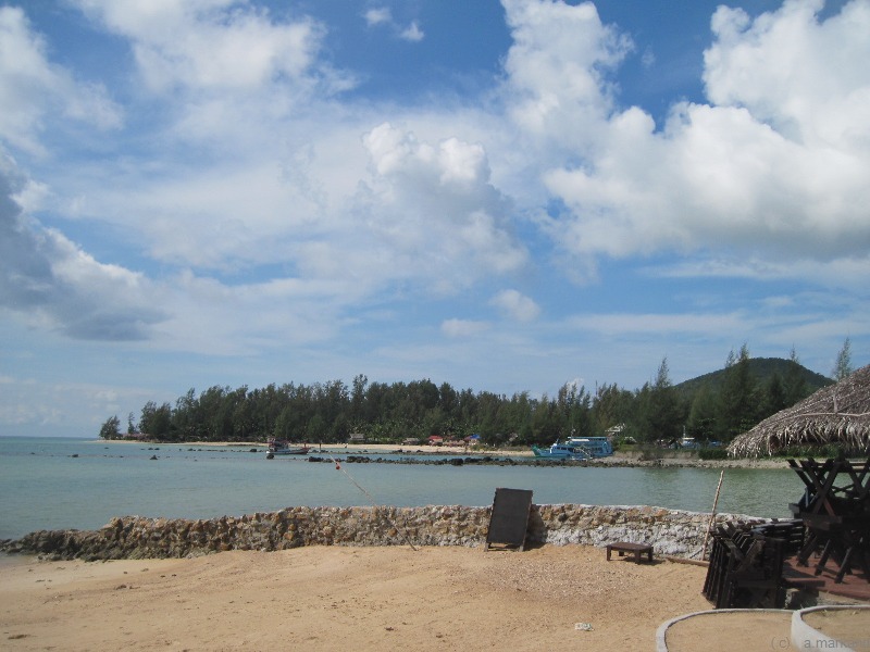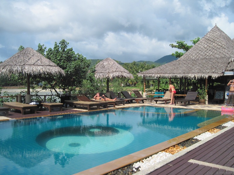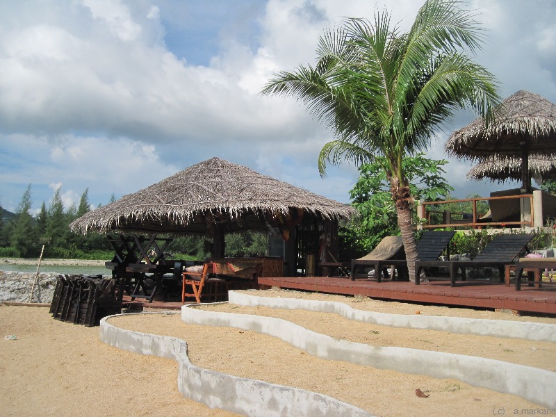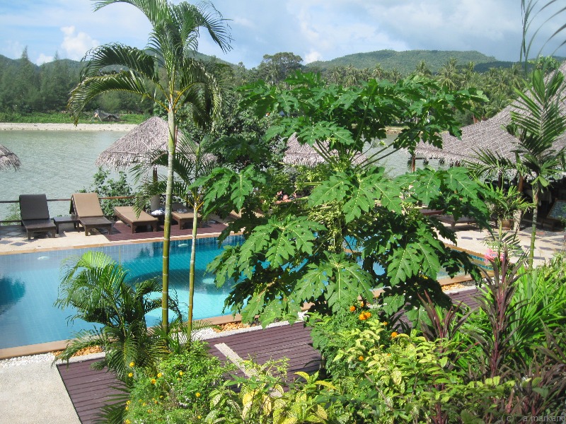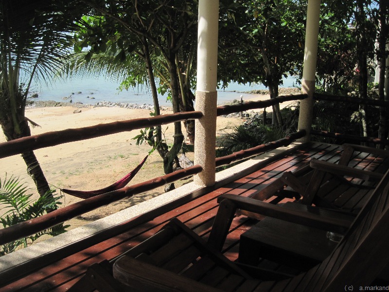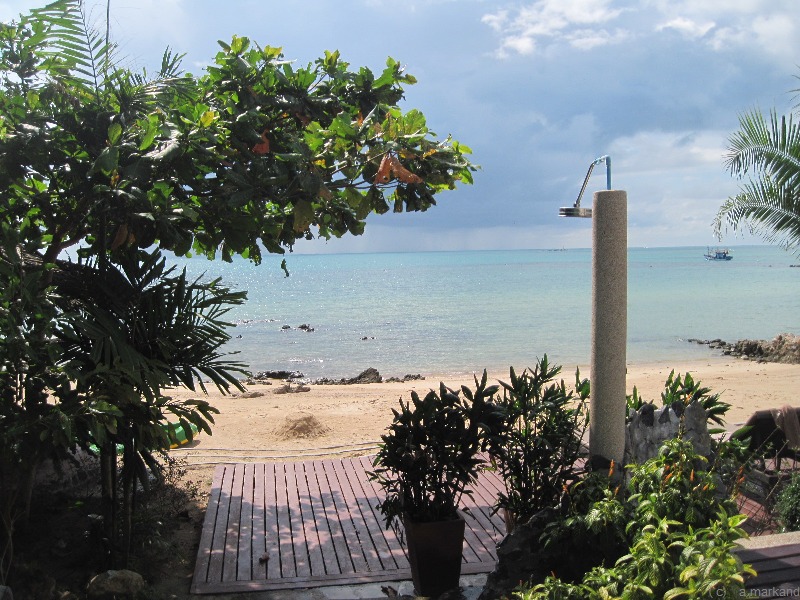 Unten wurde Sand aufgeschüttet und so haben Bewohner dieser Anlage einen kleinen Strand (zum Hat Laem Son geht es eine steile Straße hinunter (etwa 10 min Fußmarsch).