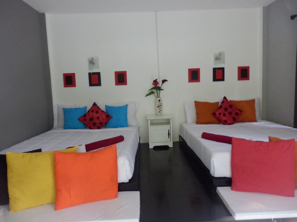 Zimmer mit Ventilator ab 1000 Baht, mit AC ab 1500 Baht. Familienbungalow mit zwei großen Betten gibt es auch.