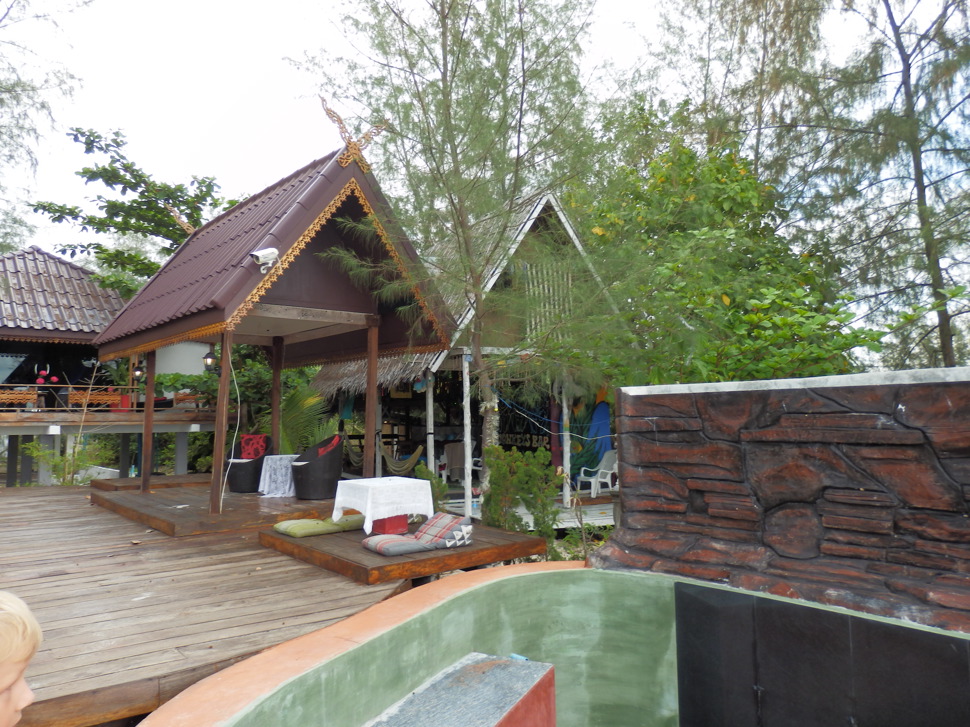 Vorne auch ein Pool (eher eine große Badewanne) mit Liegefläche.