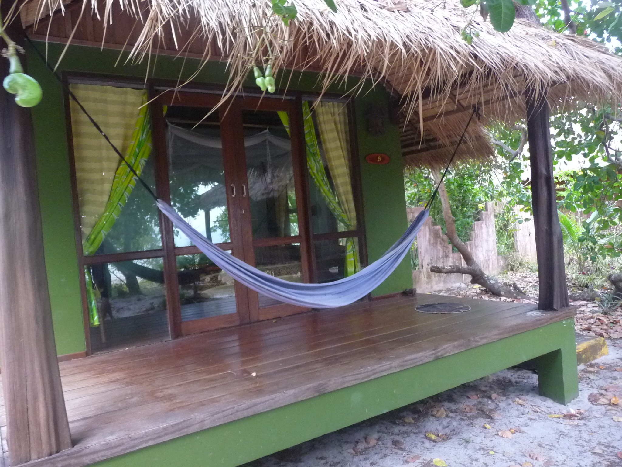 Alle Bungalows haben eine grosse Veranda und bieten eine direkte Sicht auf das Meer. Sie sind aus Stein/Holz gebaut und haben ein separates Duschbad, sind geraeumig und sehr gut ausgestattet.