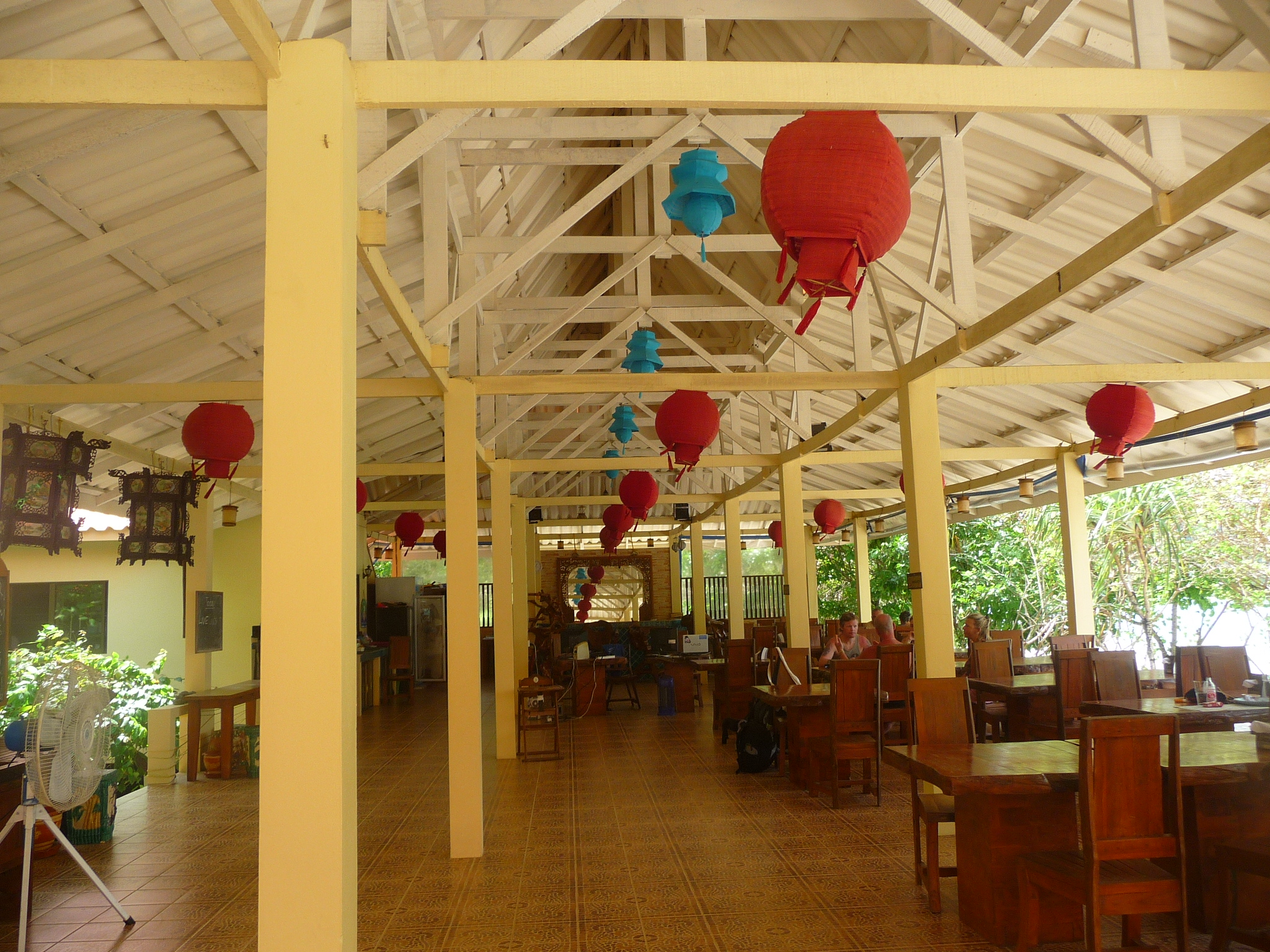Die Anlage ist etwas lieblos gestaltet: viele Steinbungalows stehen in Reih und Glied. Das Restaurant ist recht groß geraten.