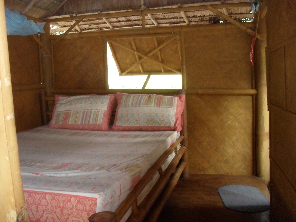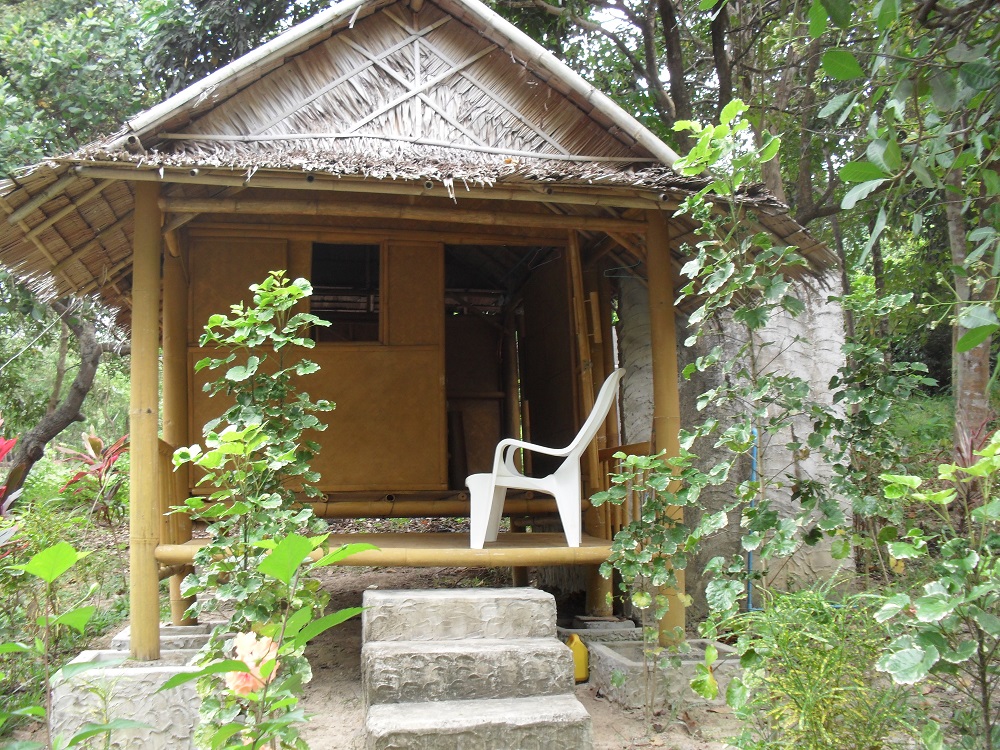 Einfache geräumige Mattenbungalows, einfache Holzhäuser und günstige kleine Bambusbungalows verteilt in einem wilden Garten am Hang über den Klippen. Teils mit Hängematten auf den oft großen Veranden.