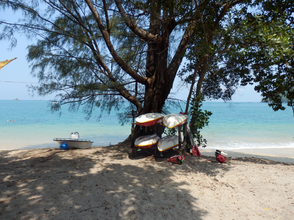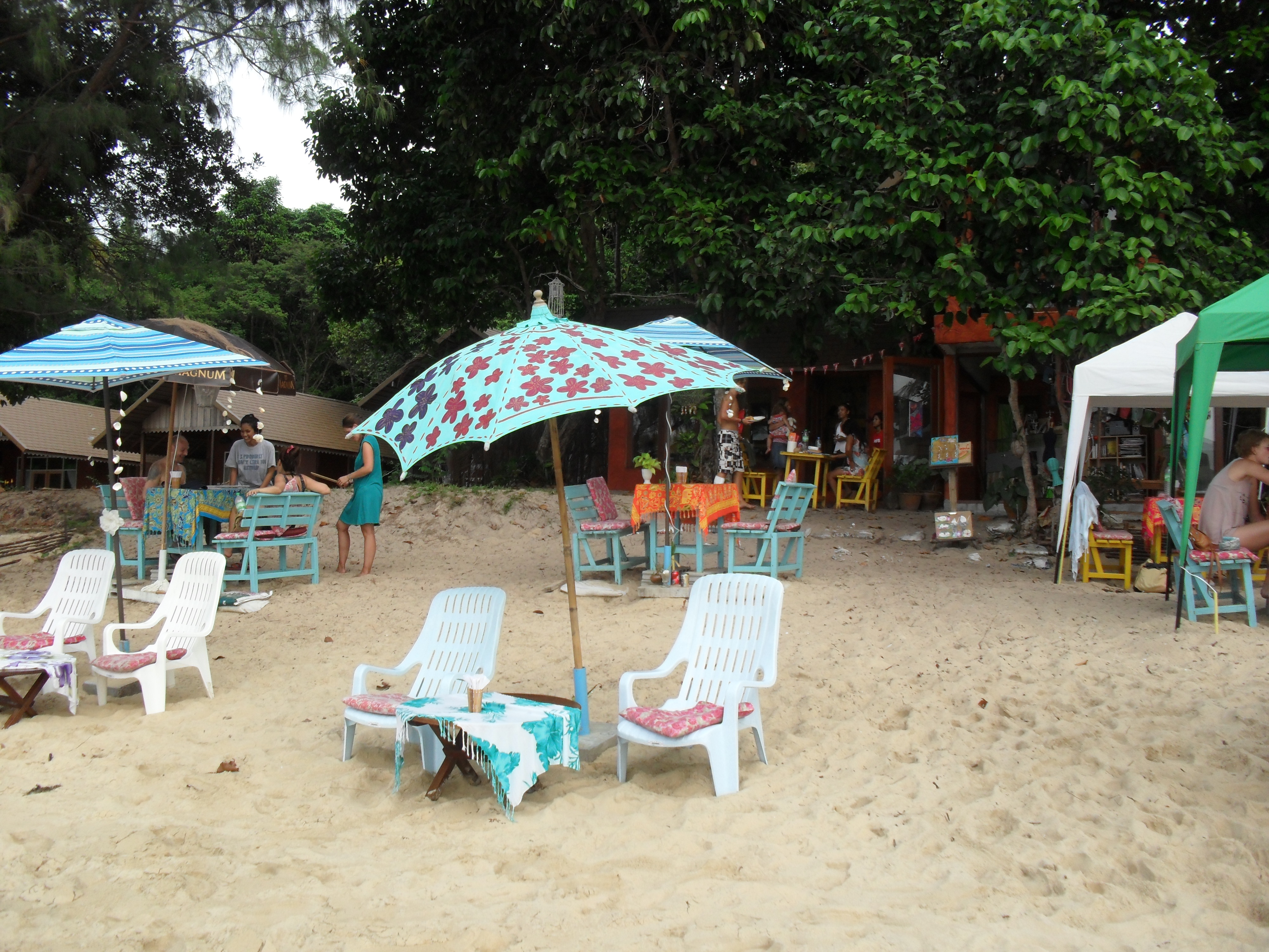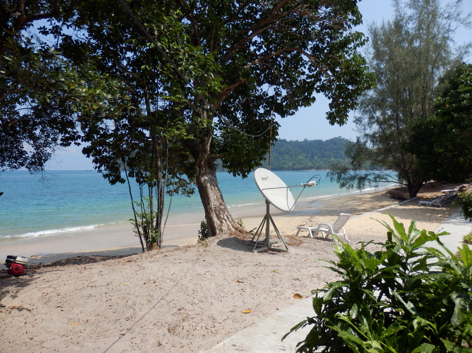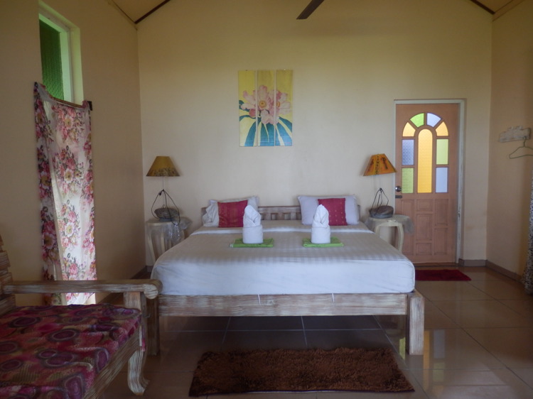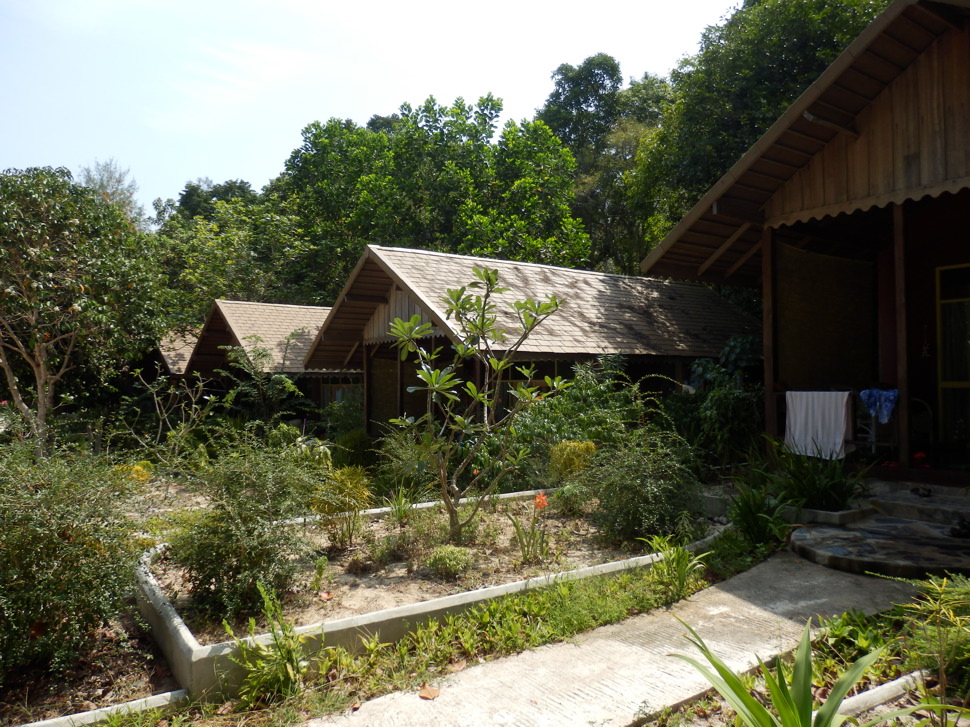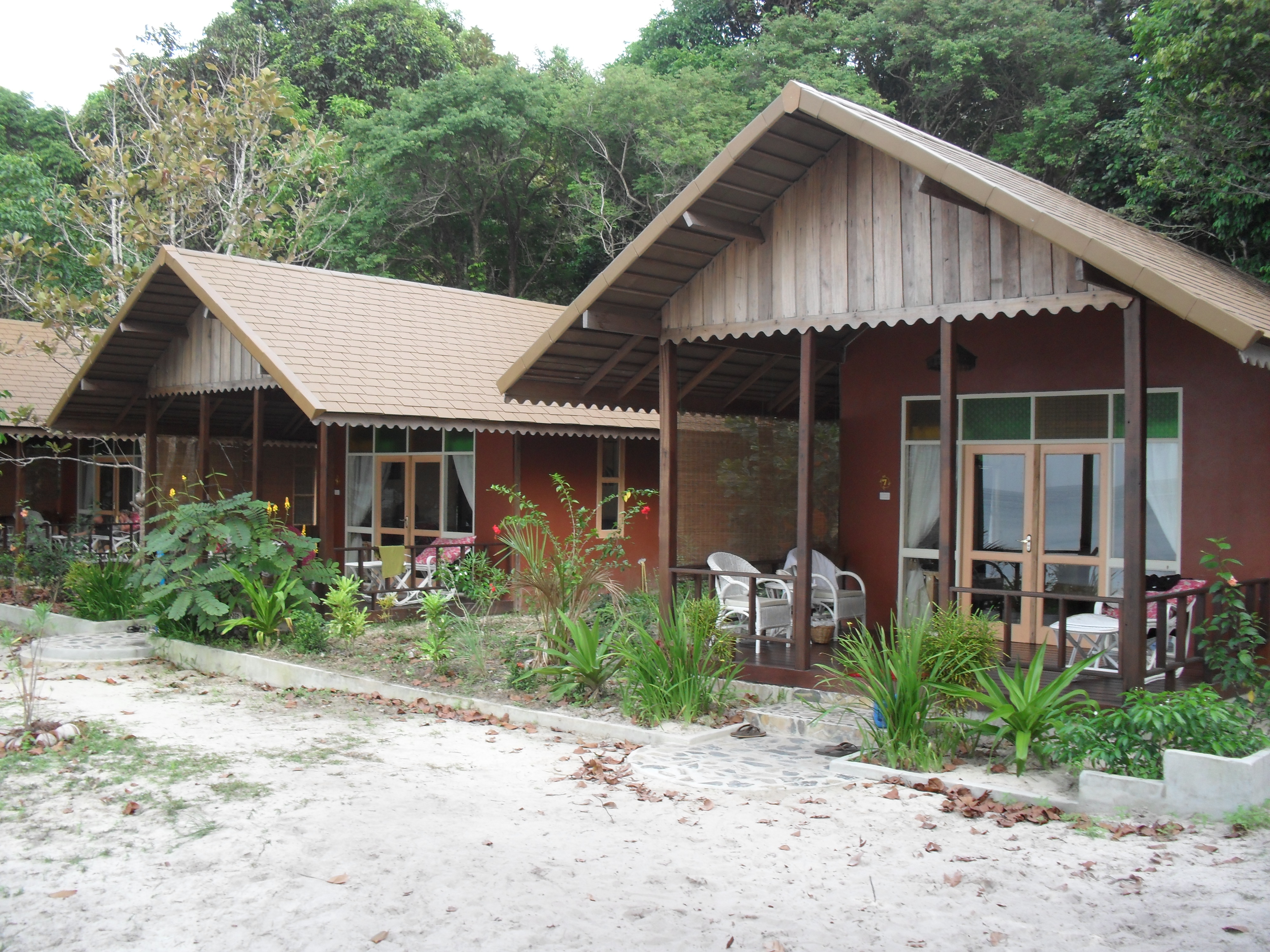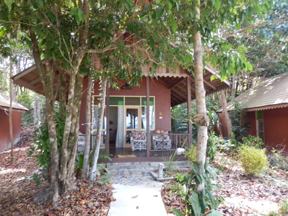 8 Zimmer mit Deckenventilator und Warmwasser in großzügigen Steinbungalows mit Panoramafenster, parallel zum Strand.