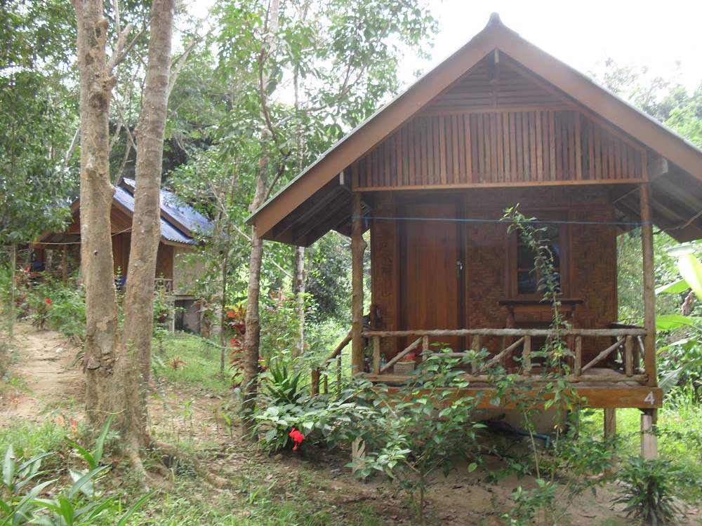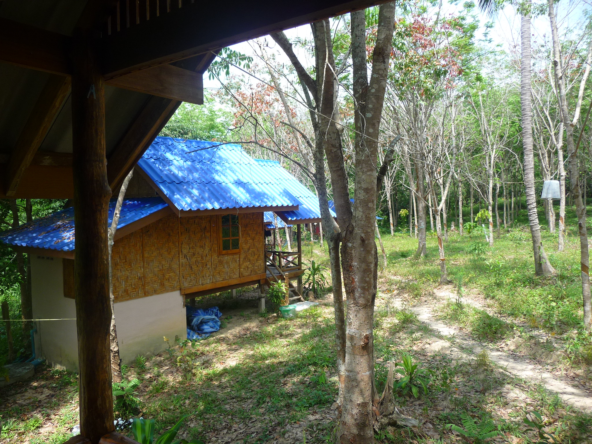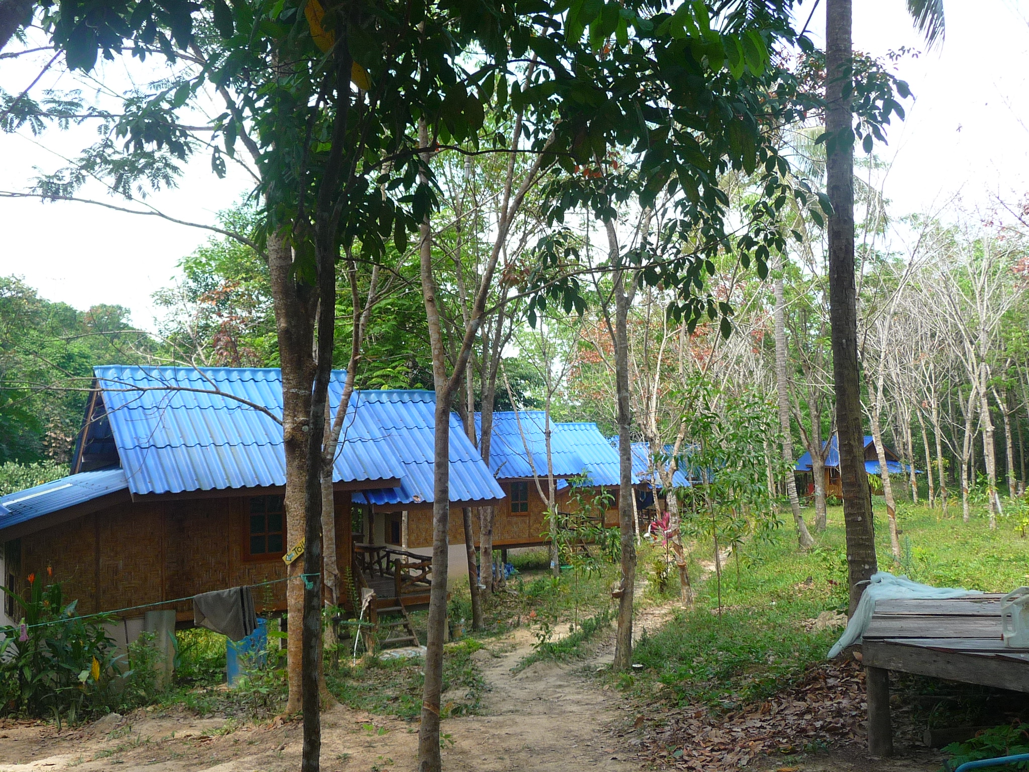 Zwar nicht direkt am Strand, dafür aber unter hohen Bäumen: eine Reihe von großzügigen Hütten aus Matte und Holz.
