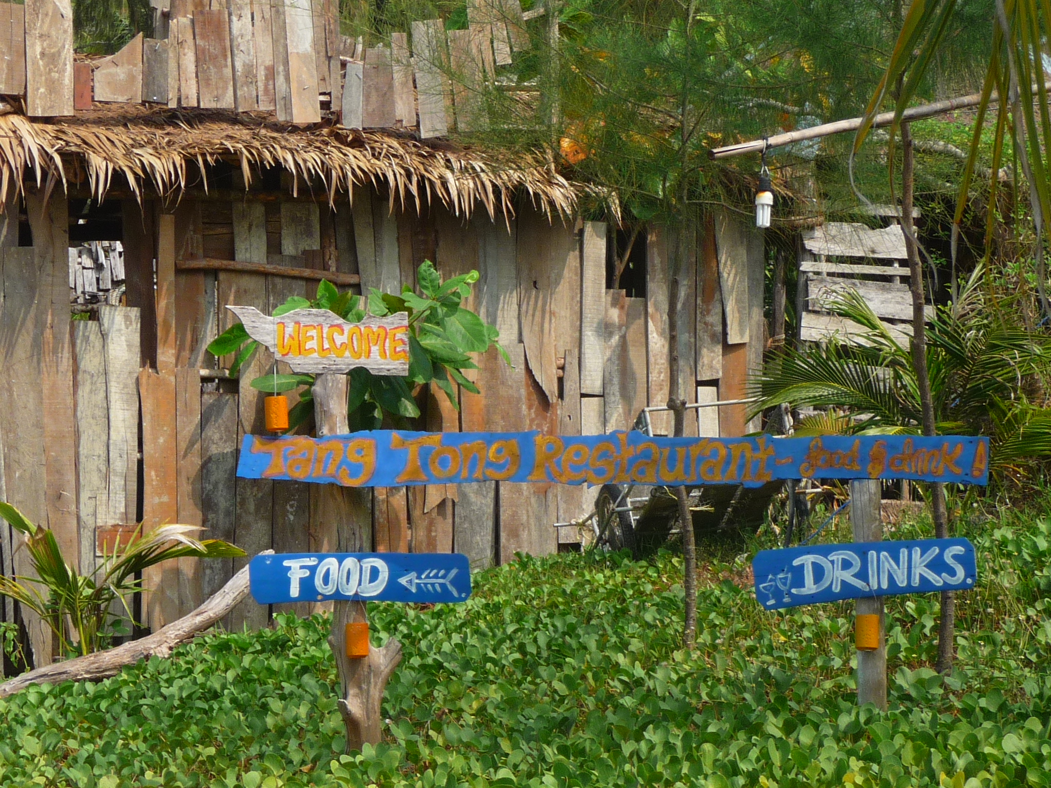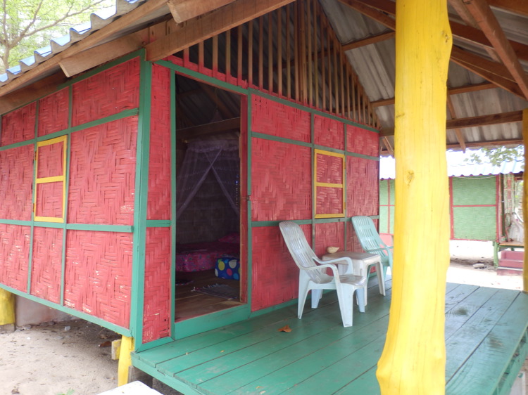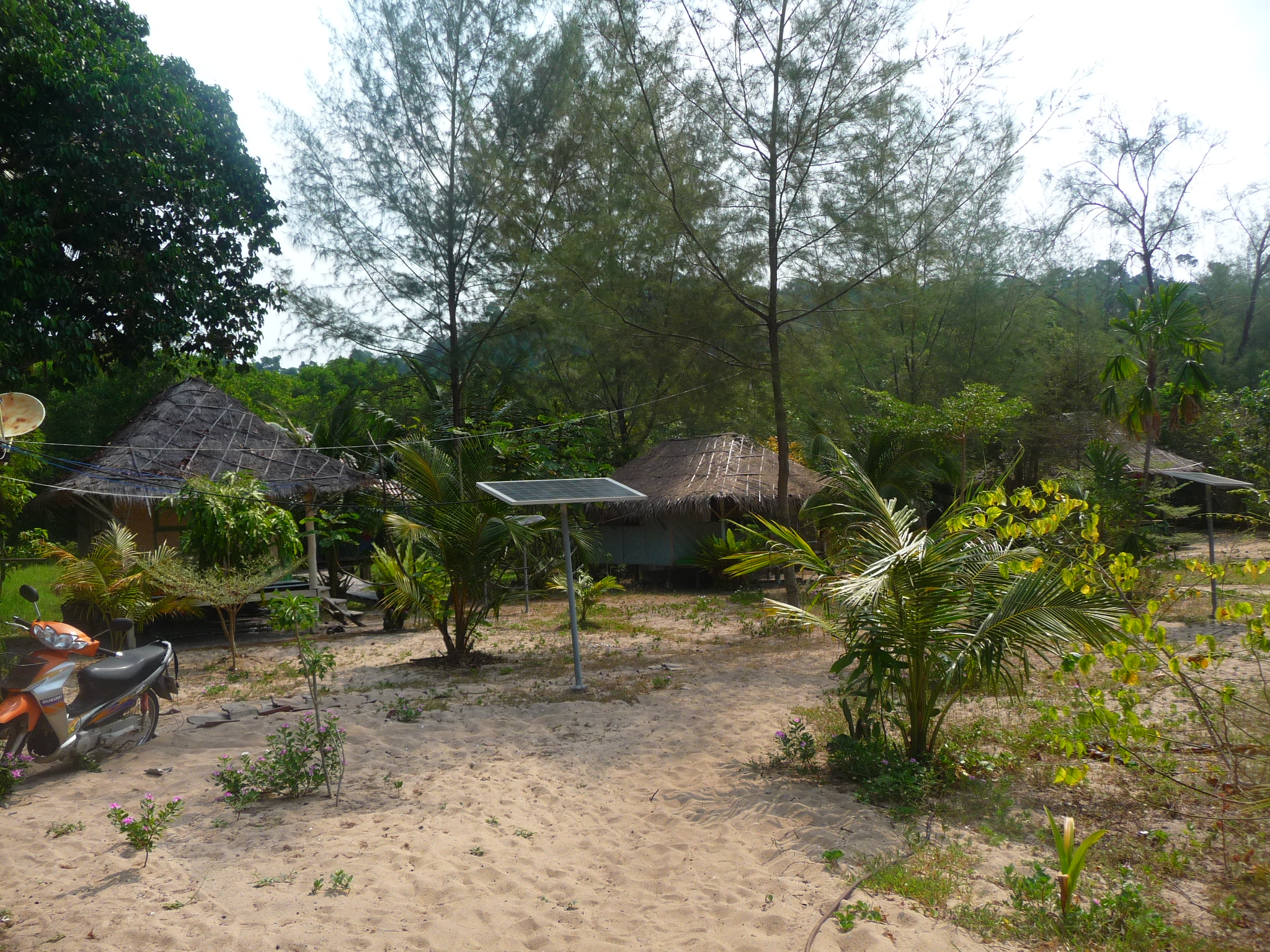 Direkt am Strad neben einem Klong und nahe der Hippie Bar stehen bunte Hütten aus Holz und Matte auf einem sandigen, baumbewachsenen Gelände.