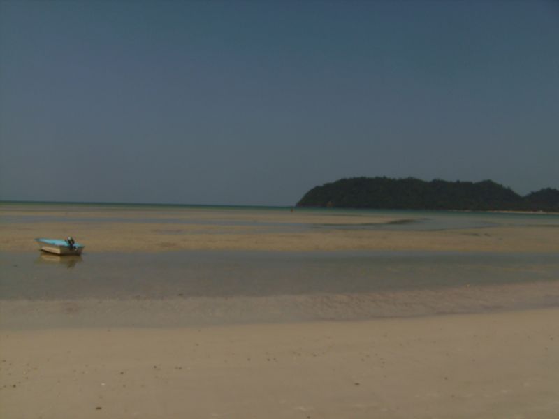 Bei Ebbe gibt es nur ganz wenig Wasser. Schwimmen kann man nur bei richtig hoher See.