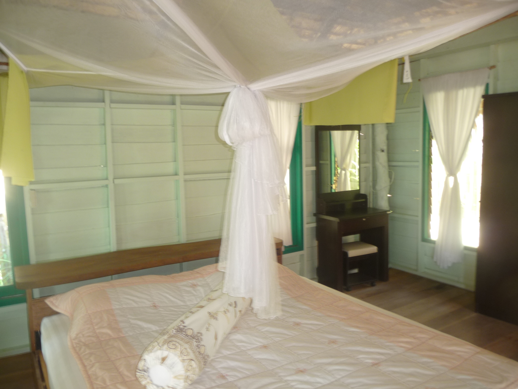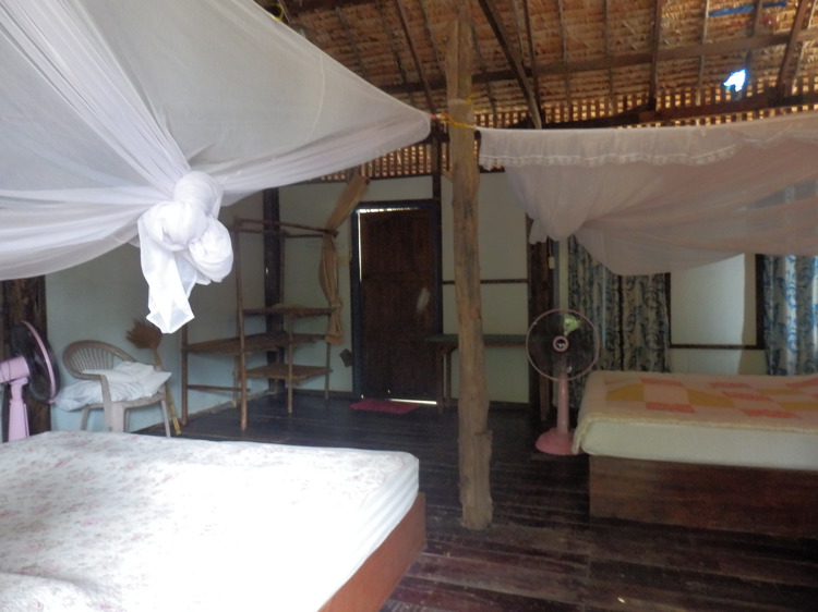 Die Bungalows sind groß und sauber. Sie sind innen Weiß gestrichen. Dadurch sind sie heller. Allerdings sieht man die Spuren der Regenzeit dadurch deutlicher.