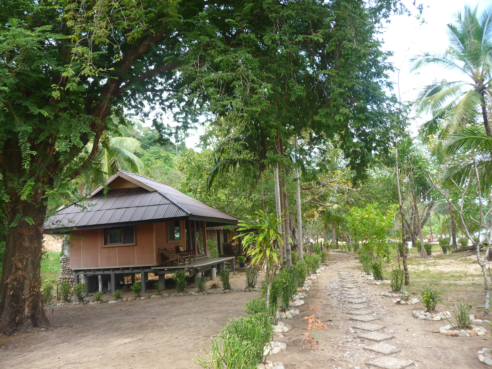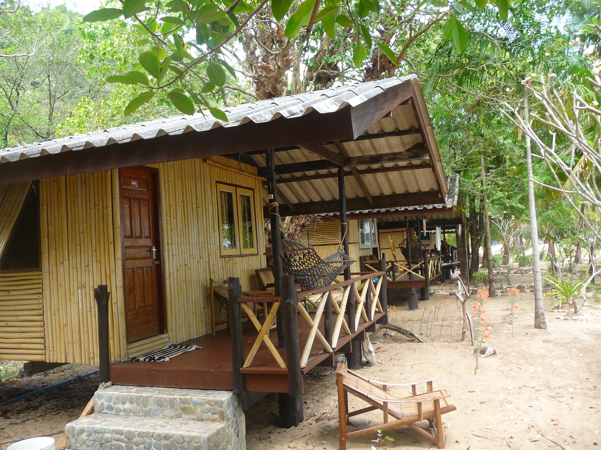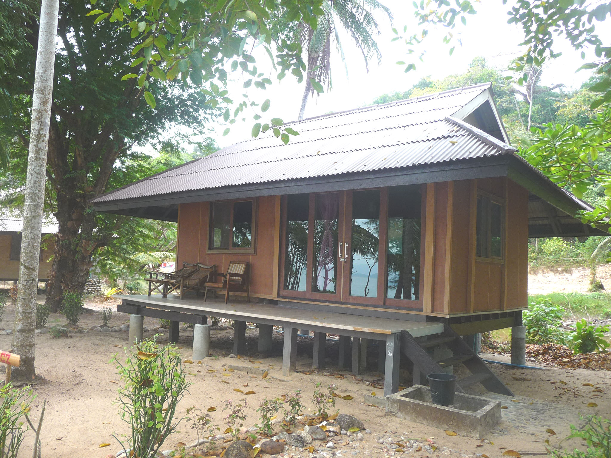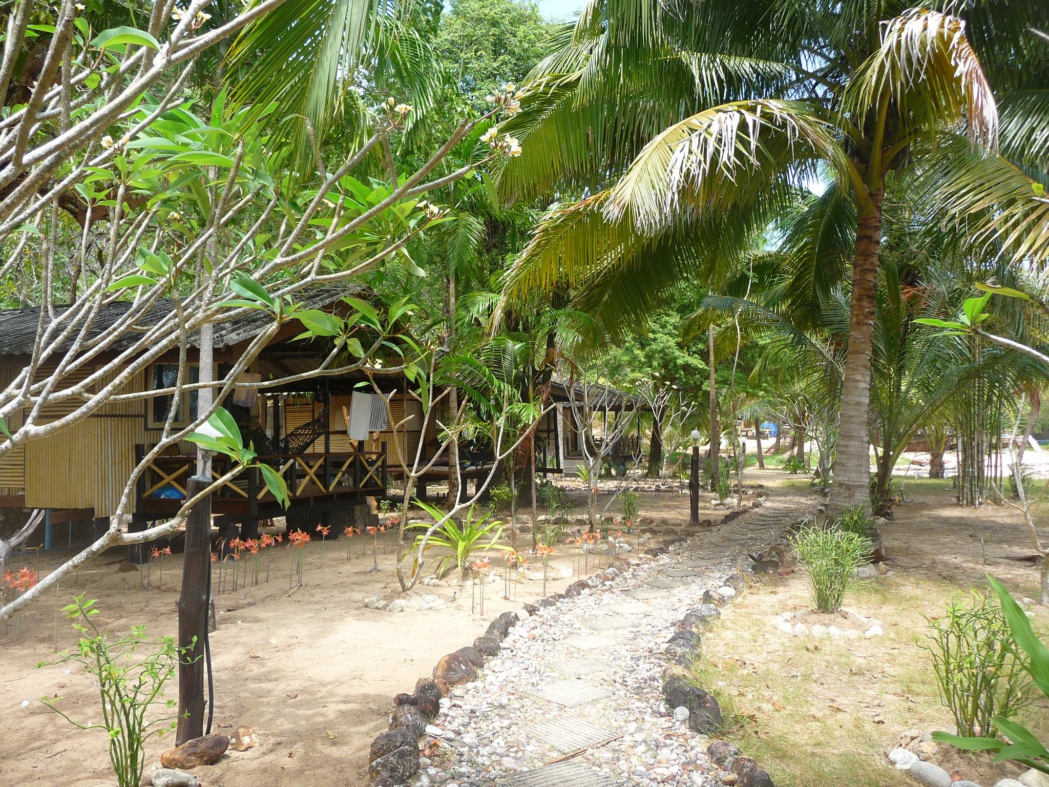 Die abgeschieden gelegene Anlage besteht aus verschiedensten Bungalows: einfache Mattenbungalows mit halb offenem Bad oder größere Holzimitat-Bungalows mit getönten Scheiben.