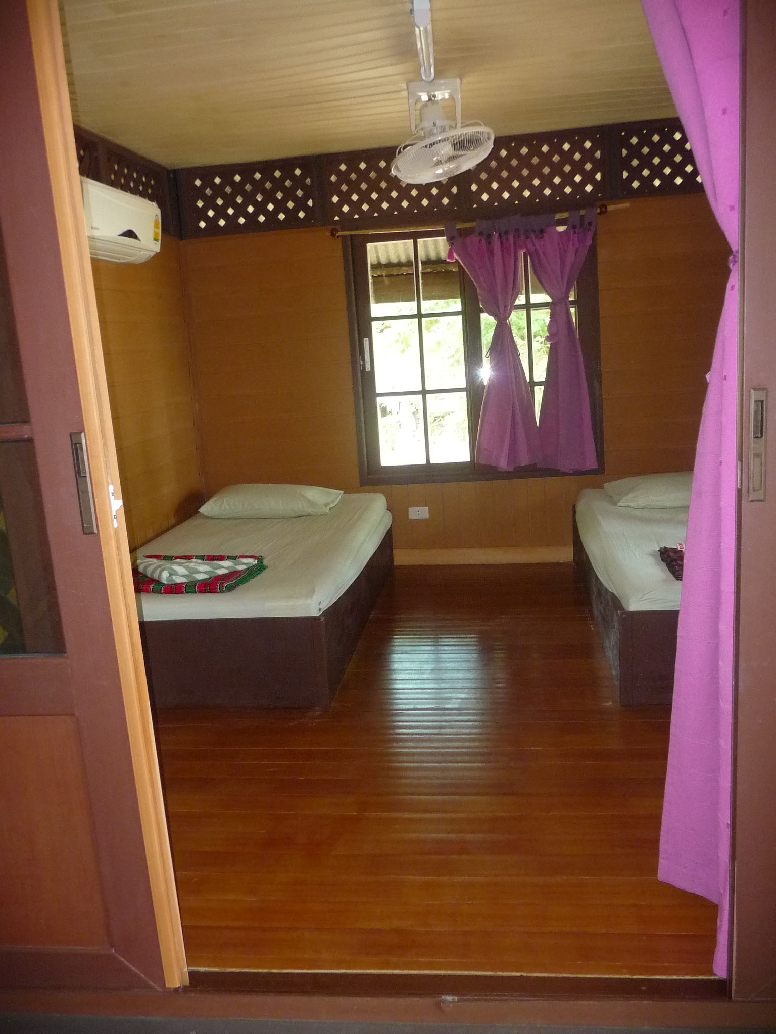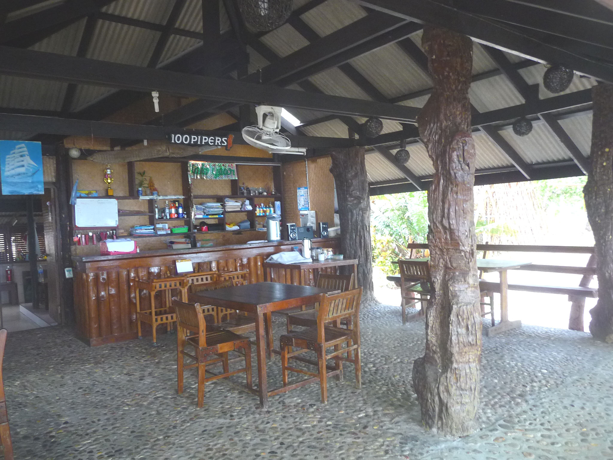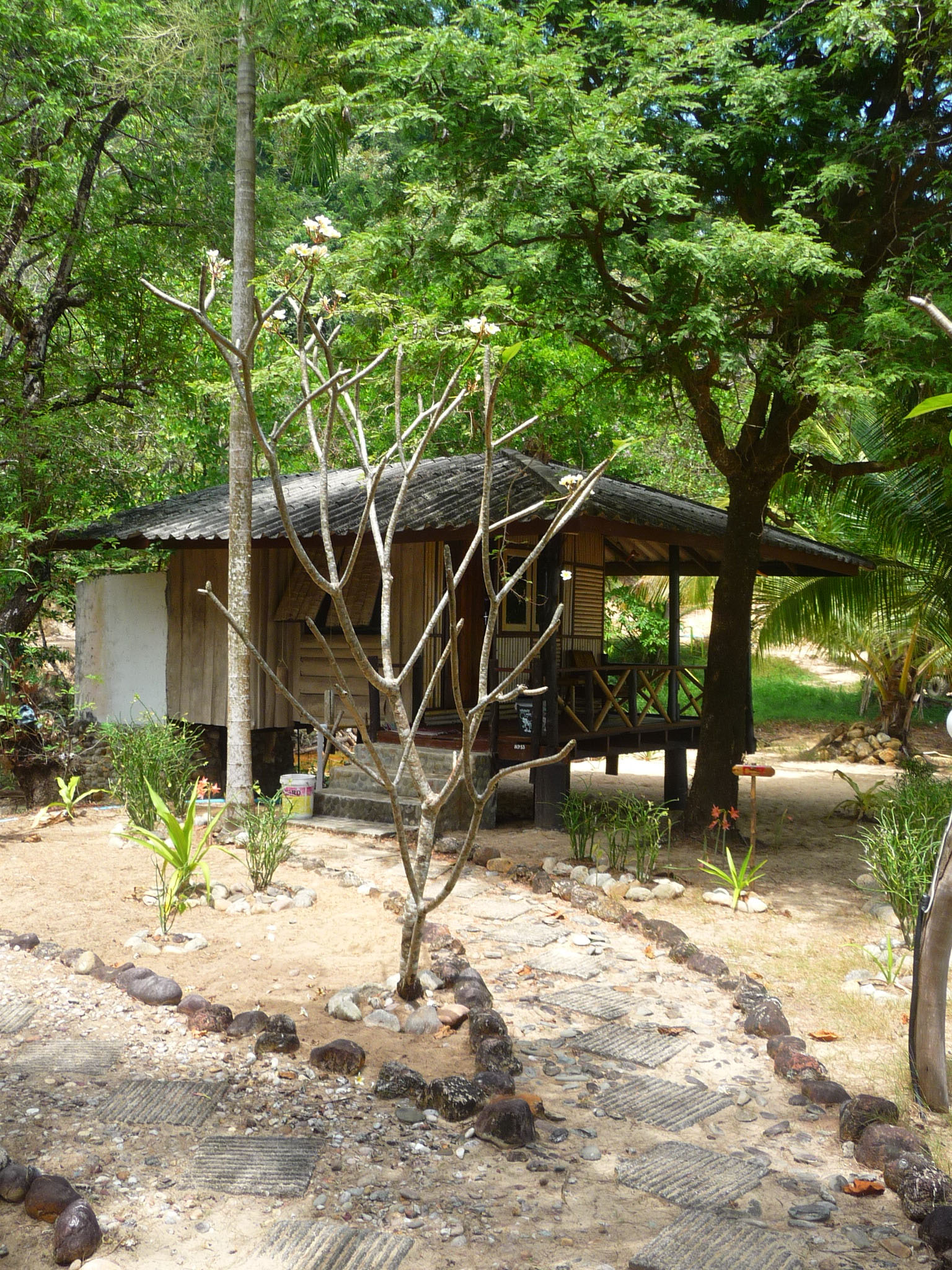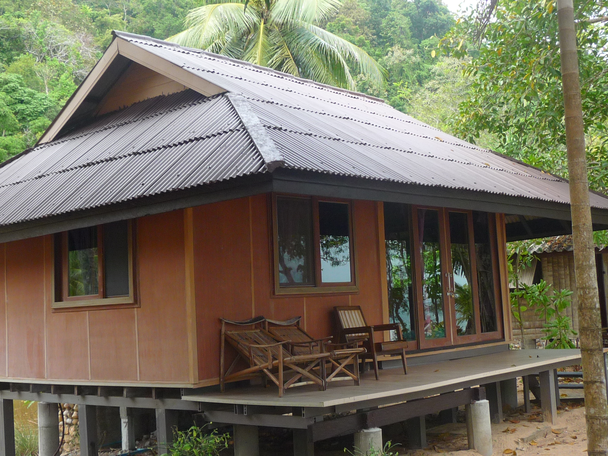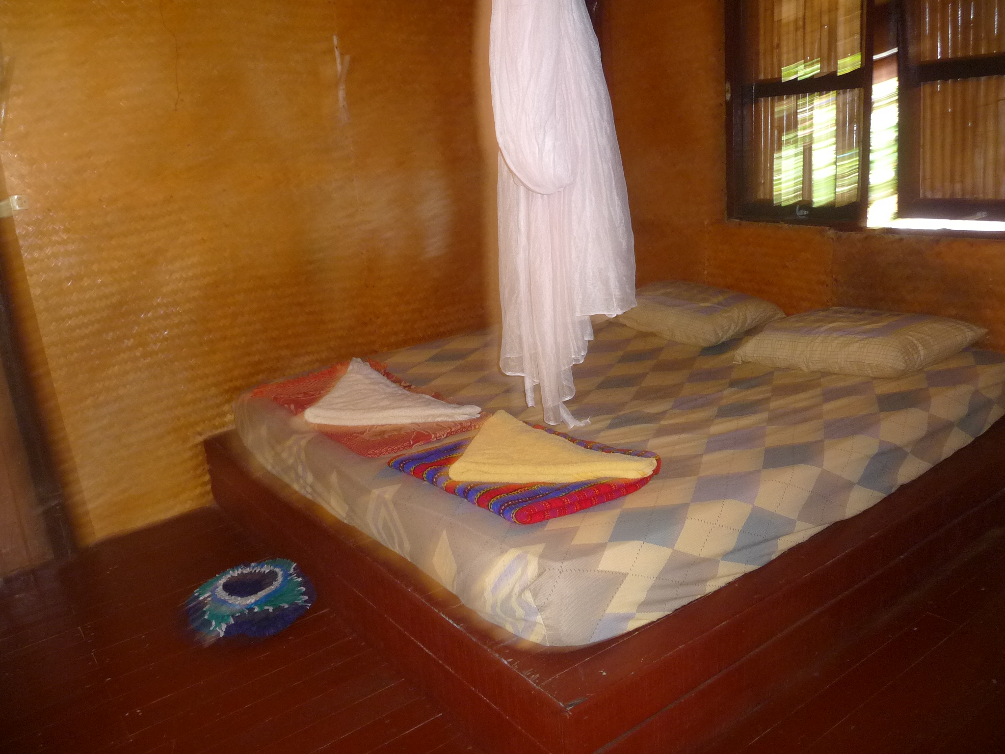 Die abgeschieden gelegene Anlage besteht aus verschiedensten Bungalows: einfache Mattenbungalows mit halb offenem Bad oder größere Holzimitat-Bungalows mit getönten Scheiben.