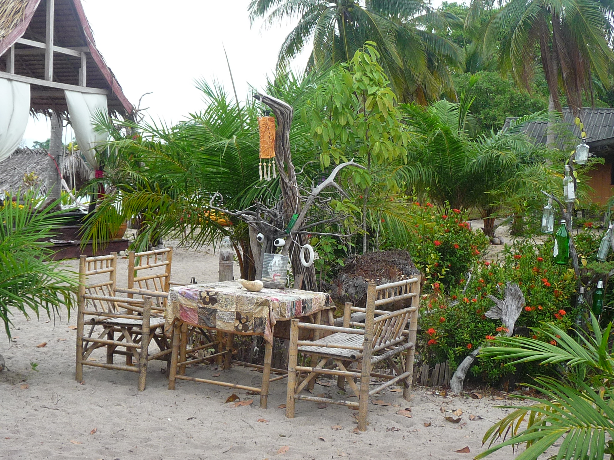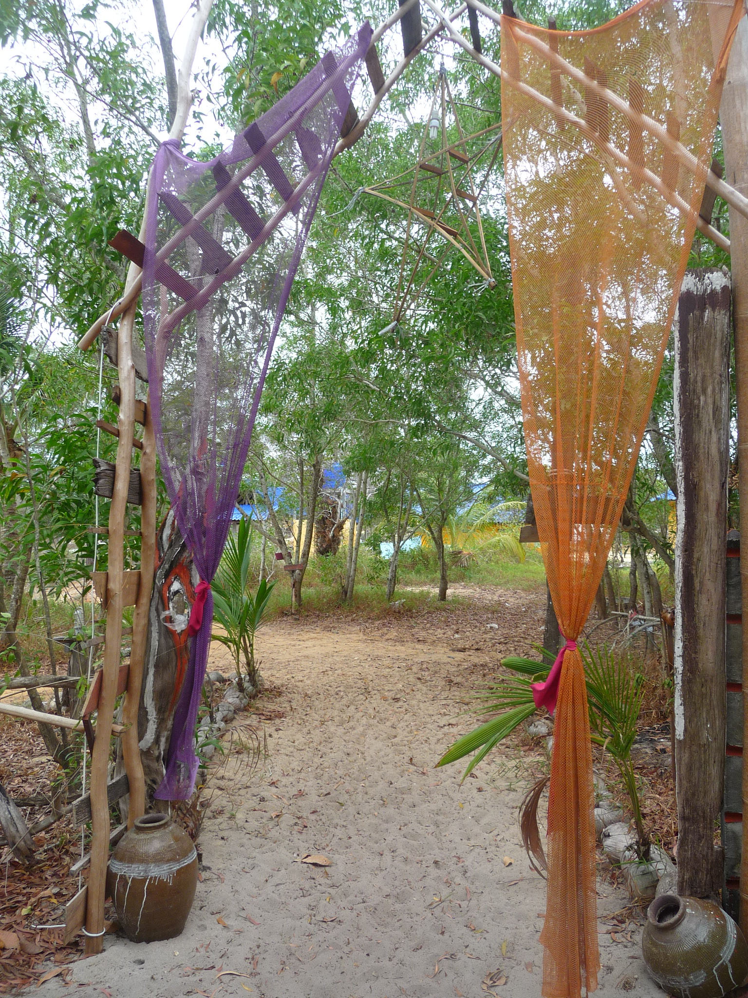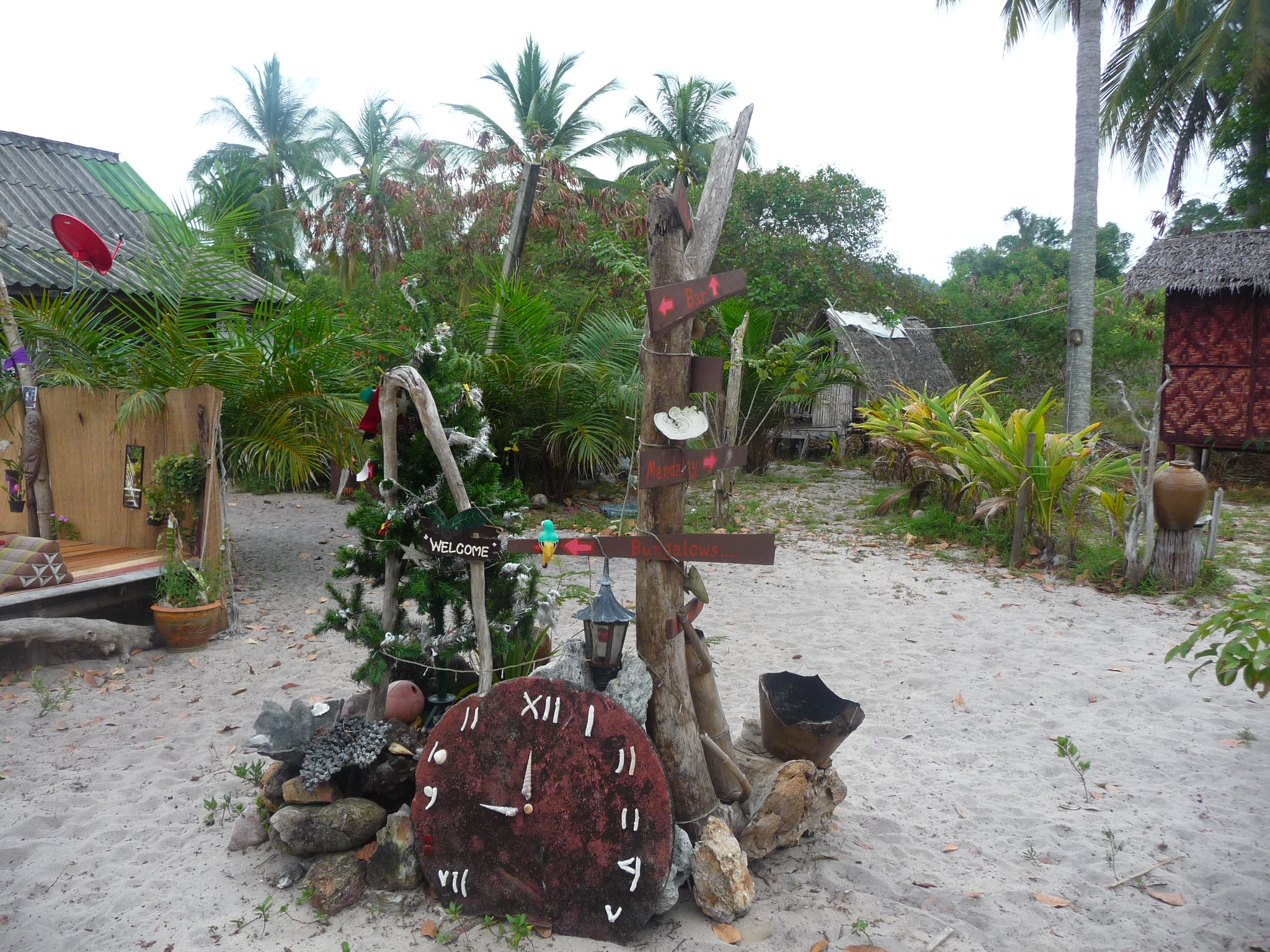 Schon beim Betreten der Anlage fällt dem Besucher eine ganze Reihe von sauber im Sand abgestellter Schuhe auf. Bei genauerem Hinsehen stellt sich heraus, das es sich um angeschwemmte Einzelexemplare handelt. Je näher man sich umschaut, um so skurrilere und witzige Details der Dekorationen fallen ins Auge.