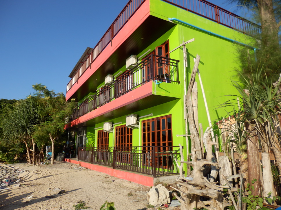 Das grellgrüne Haus direkt am Meer ist nicht zu übersehen. Die Zimmer sind schön und bieten einen direkten Blick aufs Wasser. Safe.