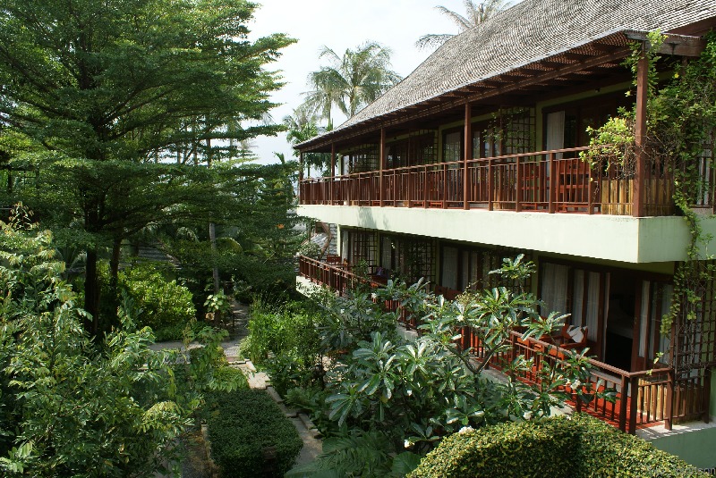 Luxusanlage mit Bungalows (auch als Poolvillen) und Zimmer im 3-geschossigen Haus.
