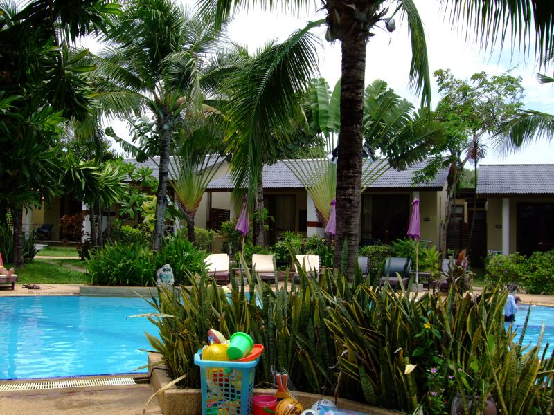 Um einen schönen wenn auch schattenlosen Pool, gruppieren sich in dieser kleinen Ferienanlage gut ausgestattete Doppelbungalows.