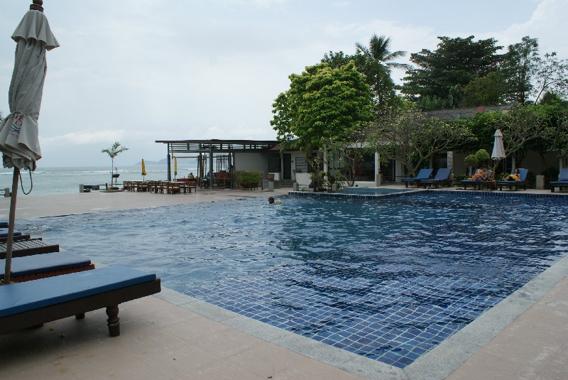 Die Anlage hat zwei Pools, einen vorne am Strand, den anderen im Garten.