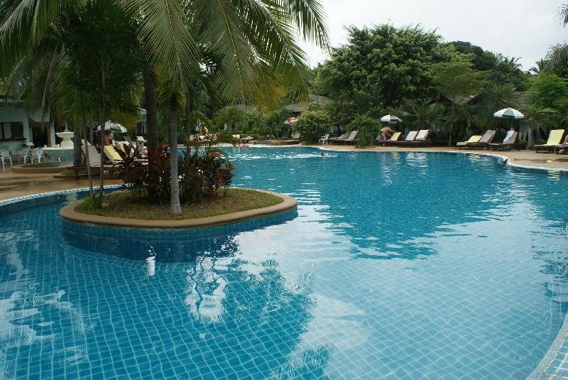 Bungalows gruppieren sich um einen großen Pool, weitere stehen vorne am Strand des Hat Chaweng Noi.