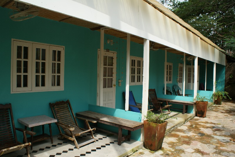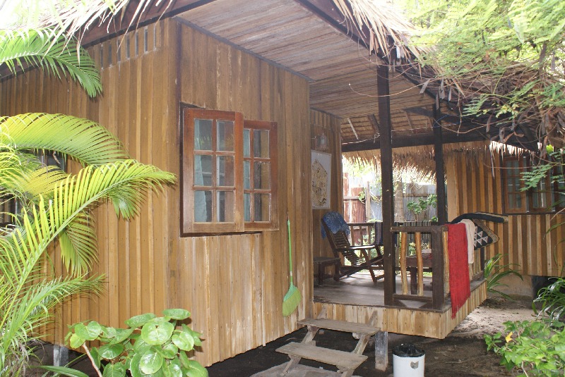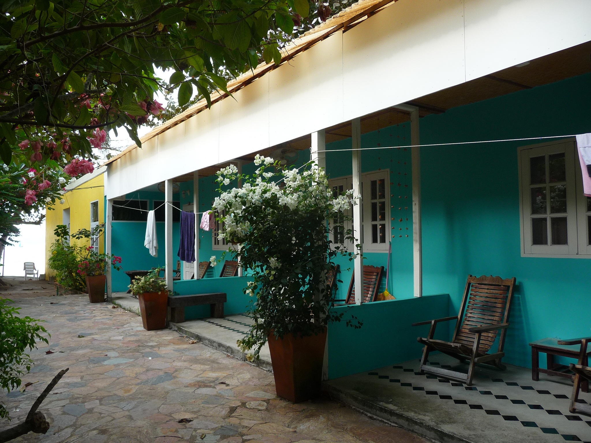 Neben einfachen Zimmer in Bungalows aus Holz und Bambus gibt es auch Räume im bunten Reihenhaus.