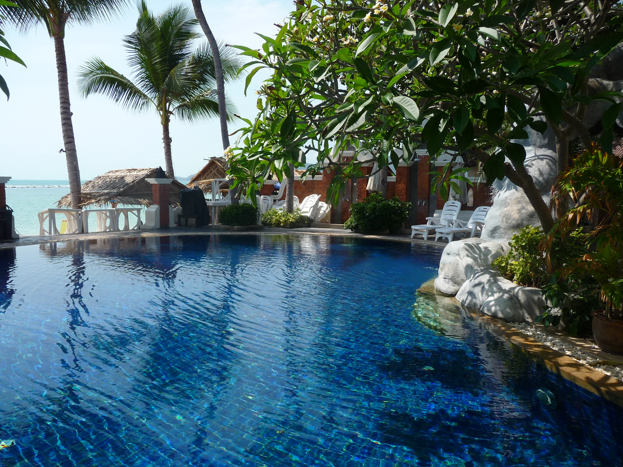 Pool am Strand mit Meerblick.