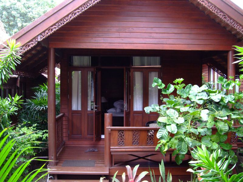 Sehr dicht bebaut mit noblen Holz- und Steinbungalows, Panoramafenster, TV, Safe.