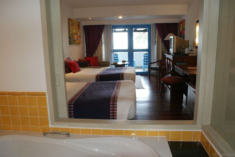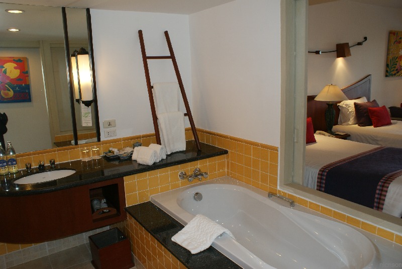 Es gibt zwei Pools: oben badet man in Süßwasser, unten in Salzwasser.