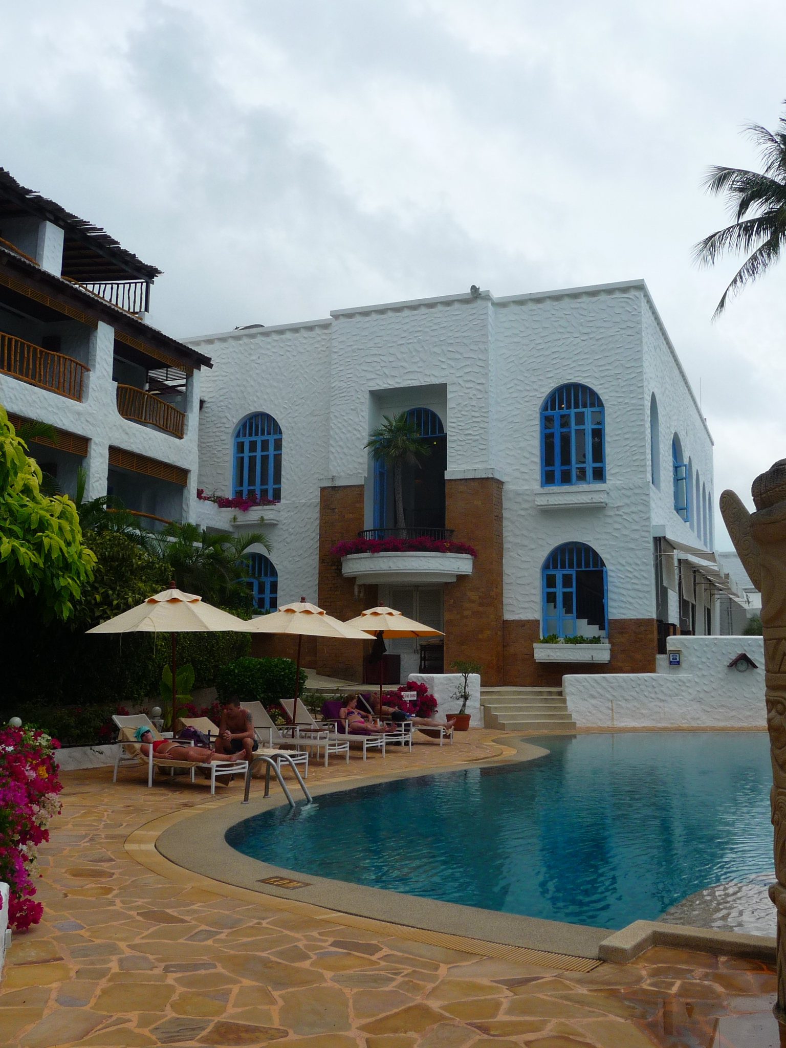 Das große weißgetünchte Gebäude könnte auch in Griechenland stehen: schöne Zimmer, mediterranes Ambiente.