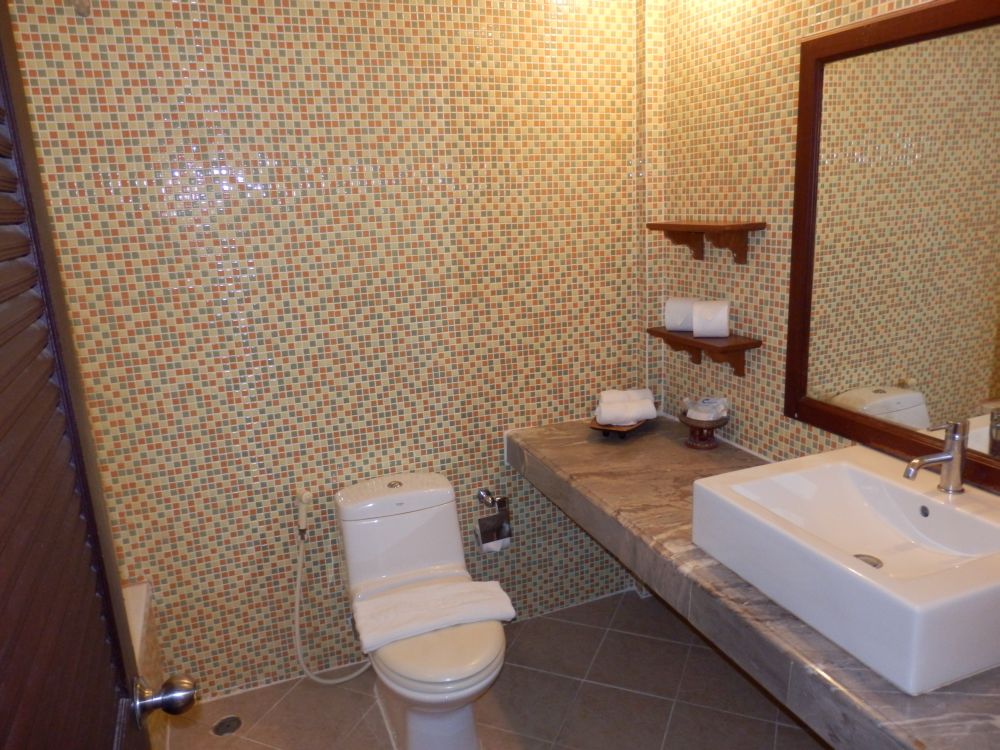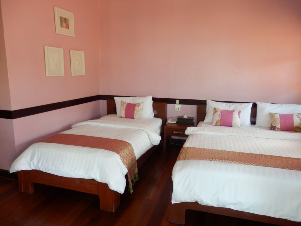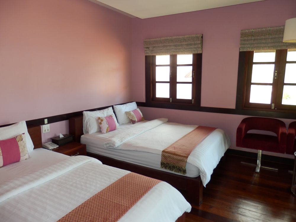 Ausstattung: TV, Badewanne, Minibar, großes und kleines Bett.