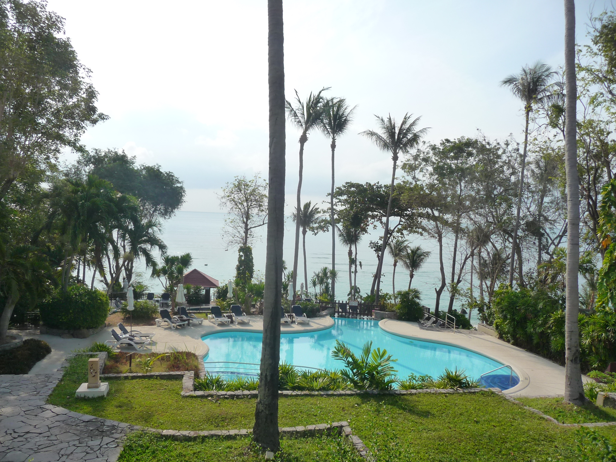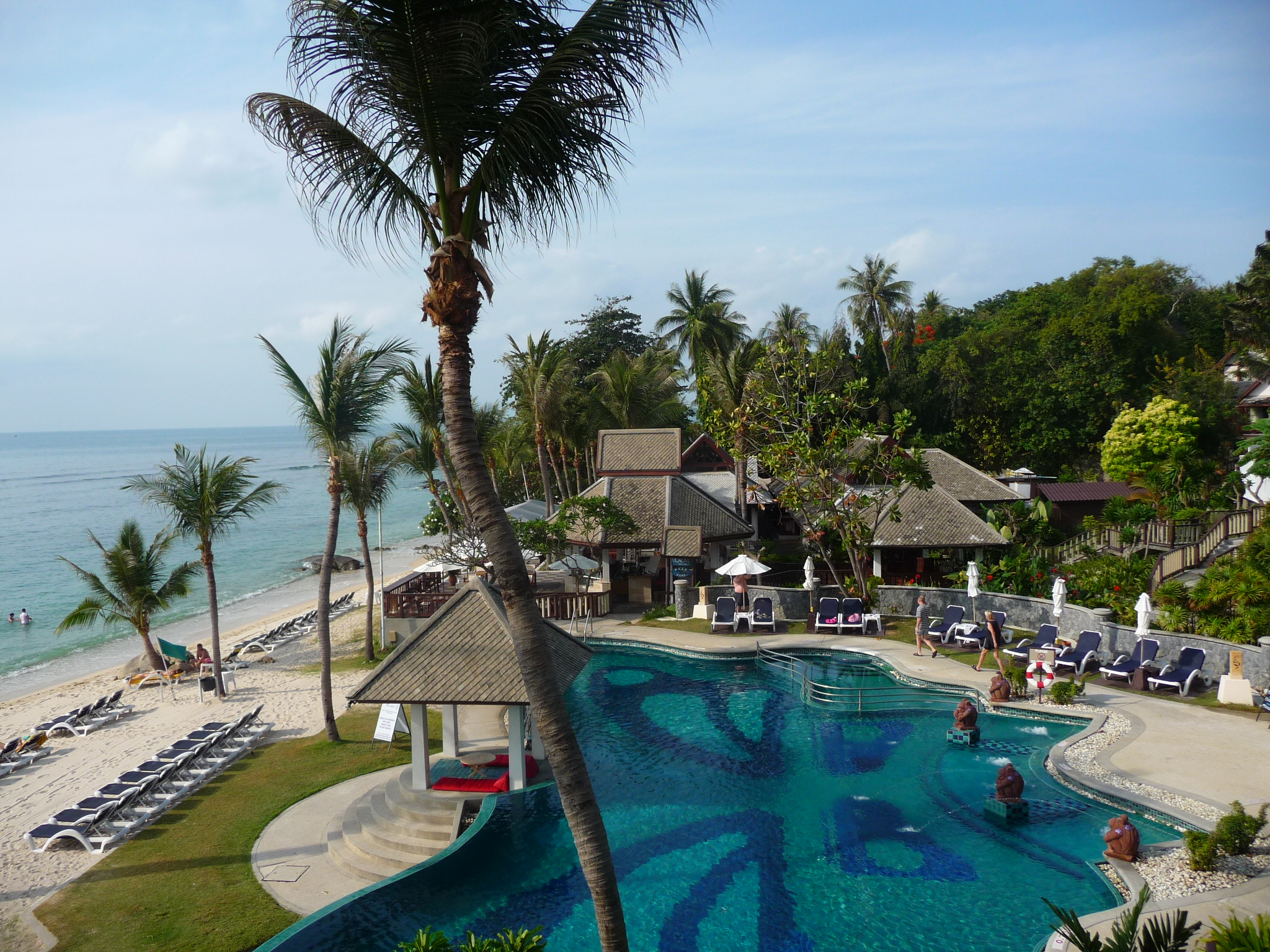 Ein Pool liegt am Strand, zwei weitere Pool im Hang in der Anlage.