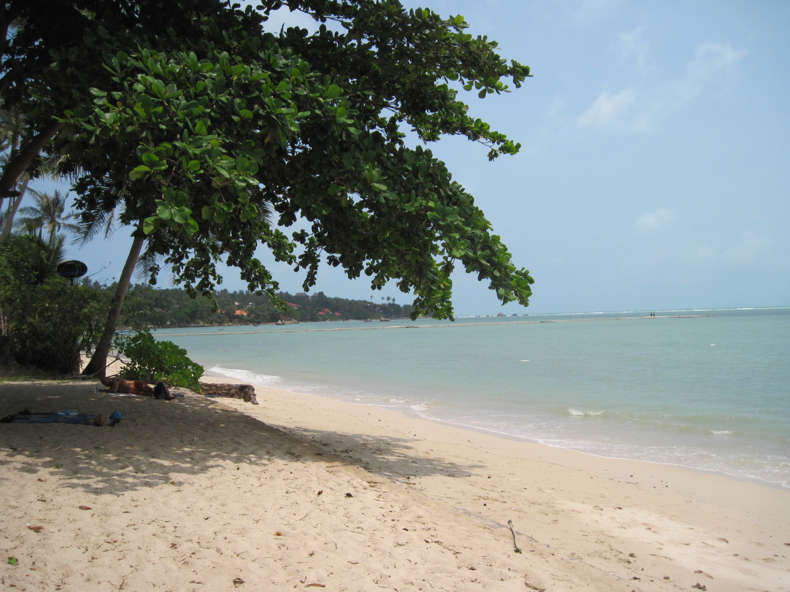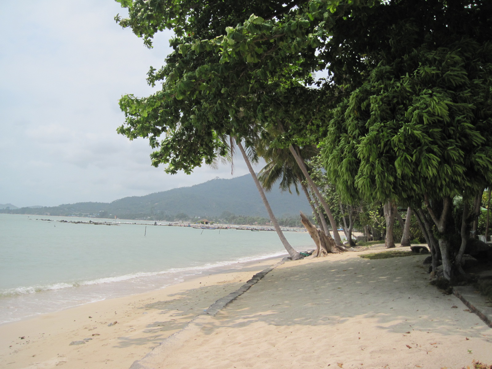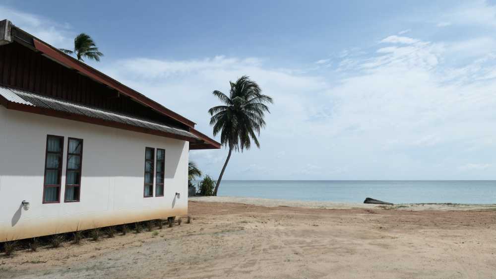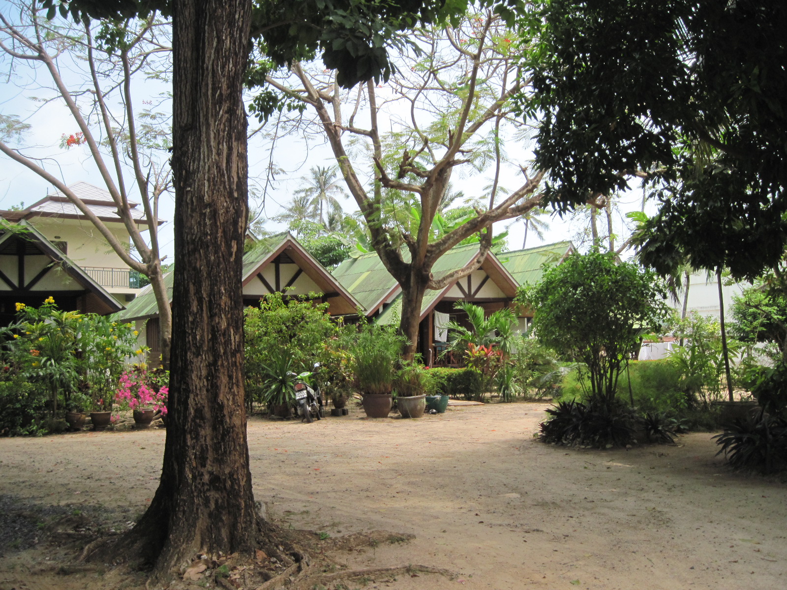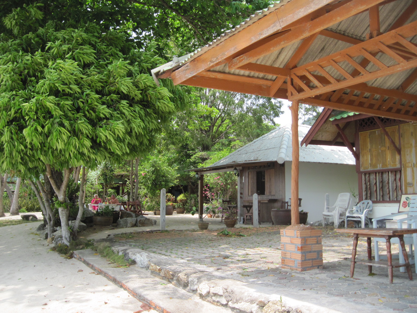 Das Schild: alt und vergilbt. Kein Grün mehr vor den wenigen stehengebliebenen Hütten. Vorne am Meer: alles platt gewalzt. Wird hier neu gebaut? Das Land verkauft? Der Mann vor Ort sieht mich stirnrunzelnd an und ich sehe ihn denken: "Was will die Frau bloß von mir wissen und warum"? Ich gebs auf :-) und wir lächeln uns an. Mai pen rai (macht nix - alles gut).