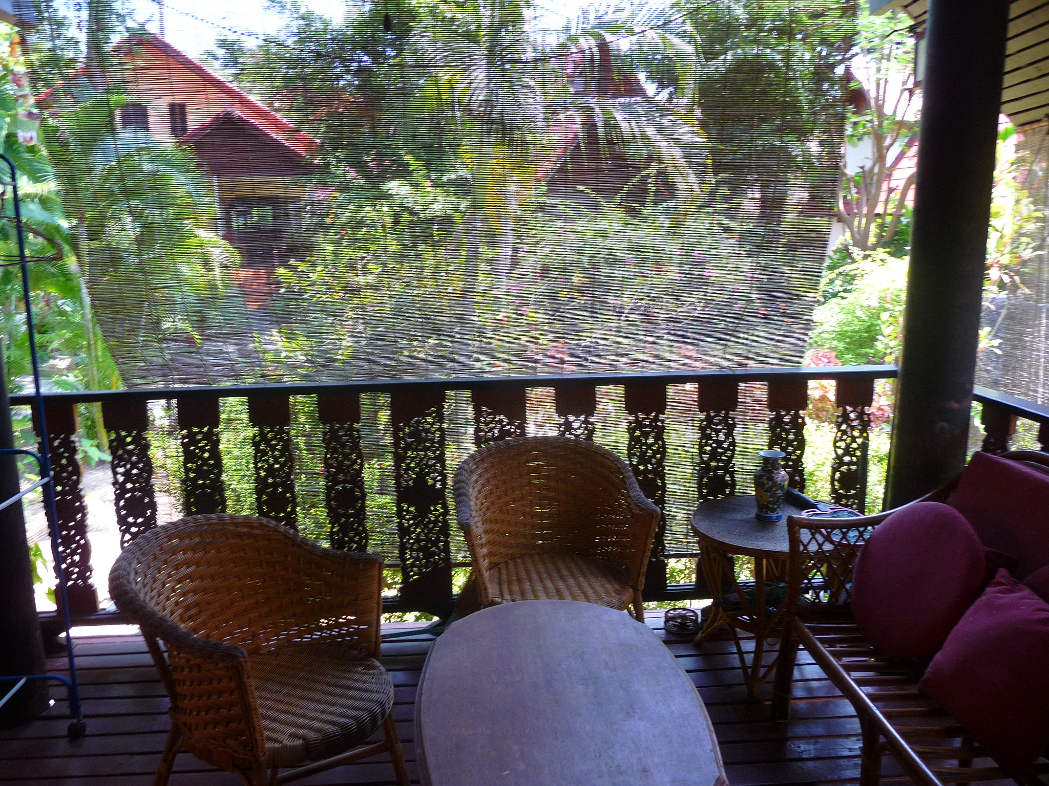 Im sehr schönen Garten stehen schöne Holzhäuser, teilweise mit 2 Schlafzimmern oder auch kleiner Küche.