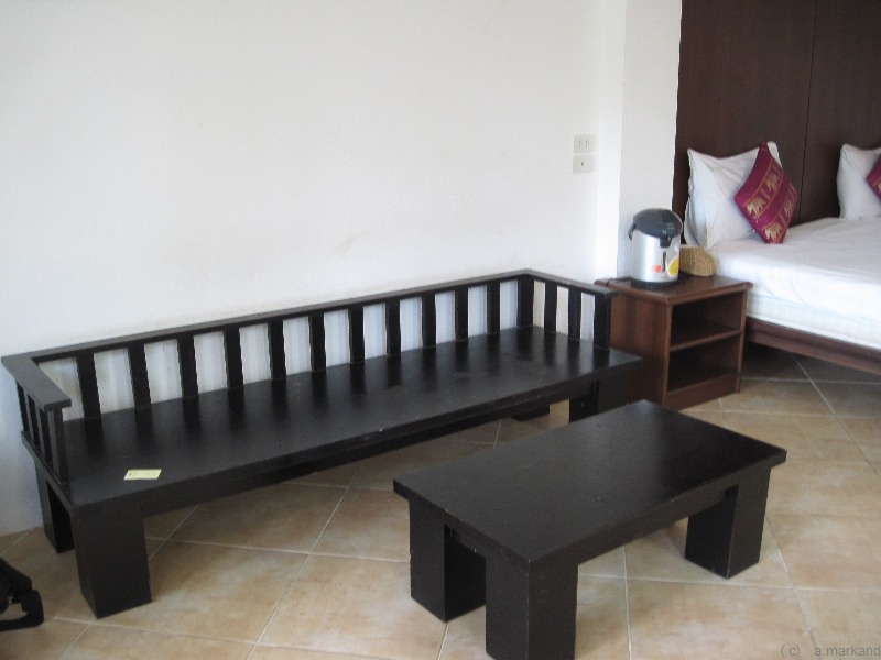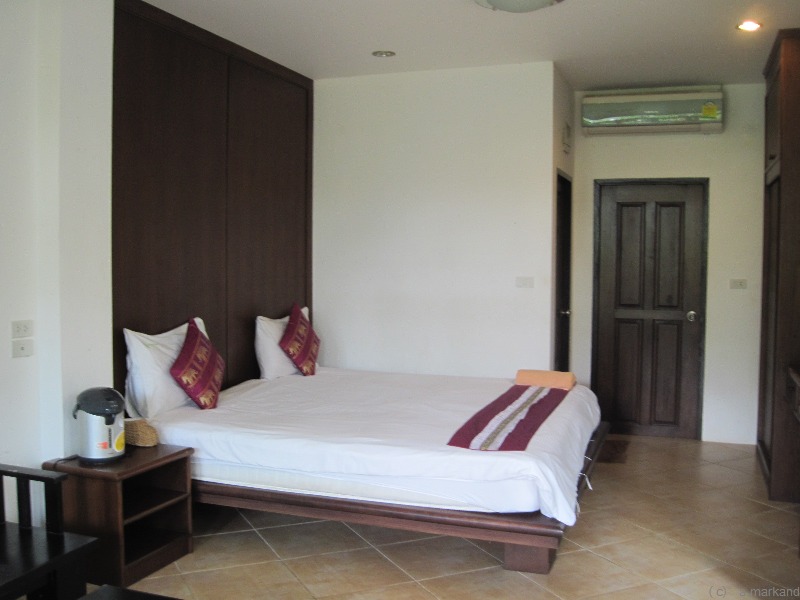 Eines jener neuen Häuser, die geräumige AC-Zimmer mit TV und Safe anbieten und um die 1000 bis 1500 Baht kosten.