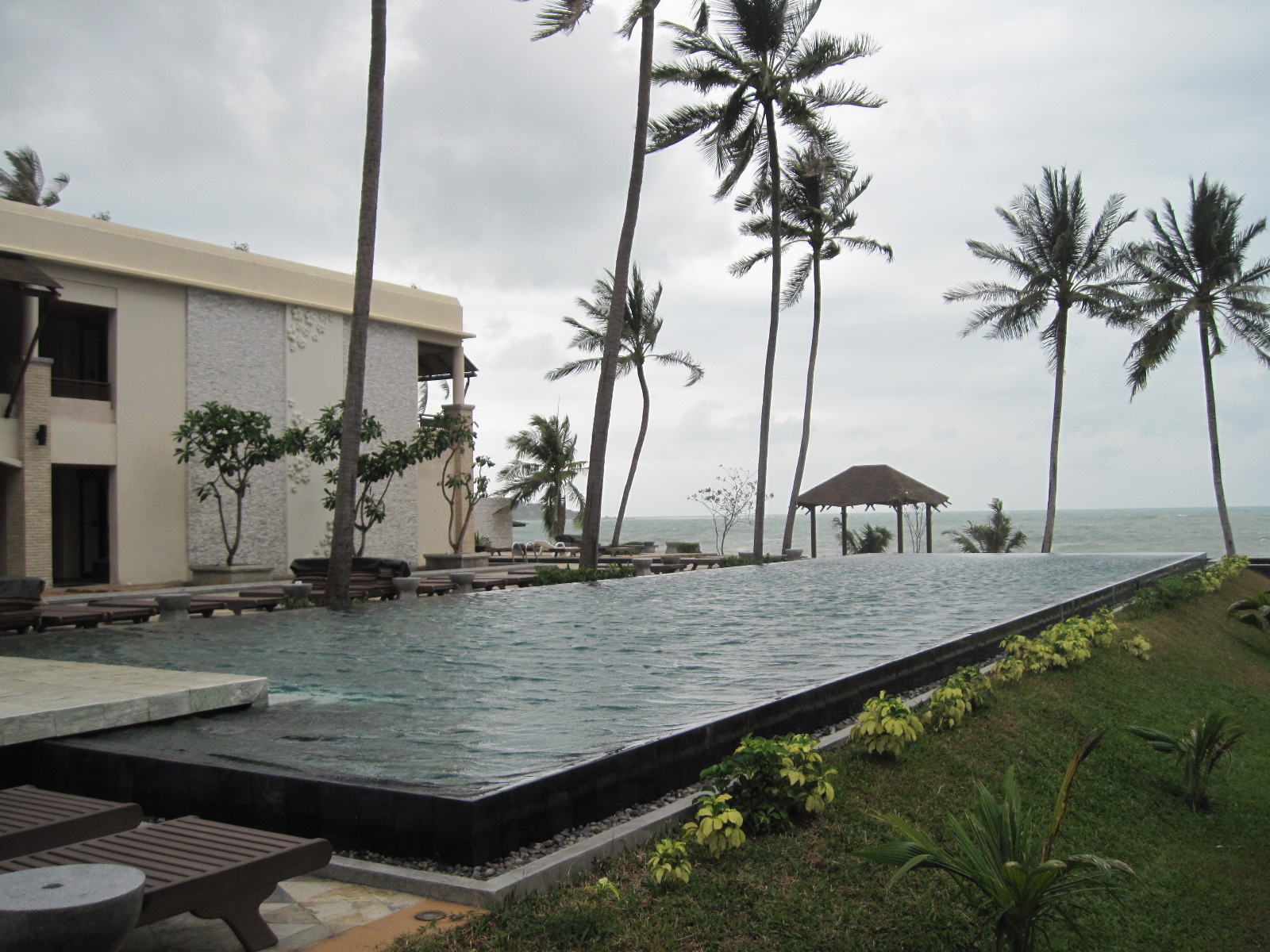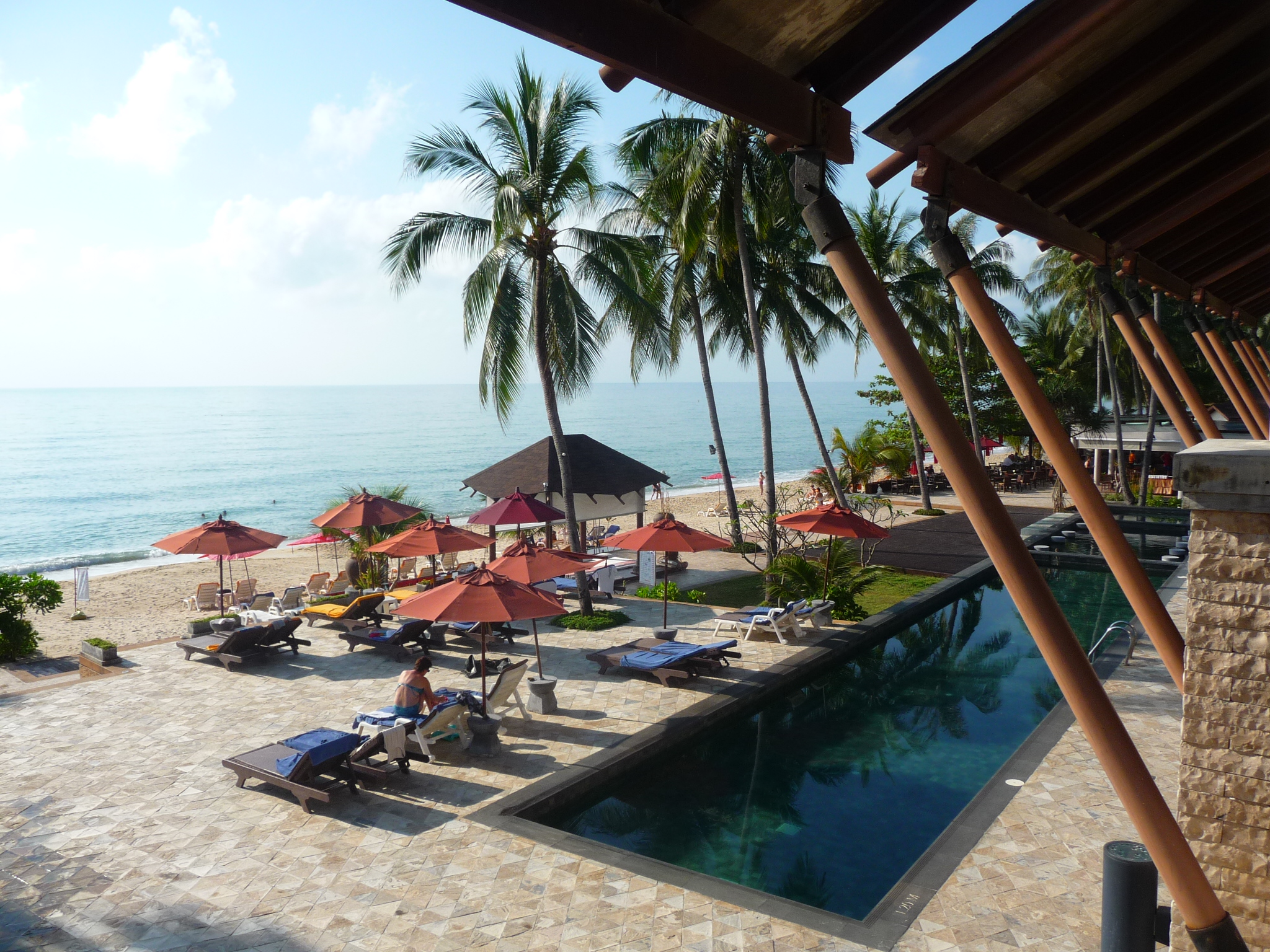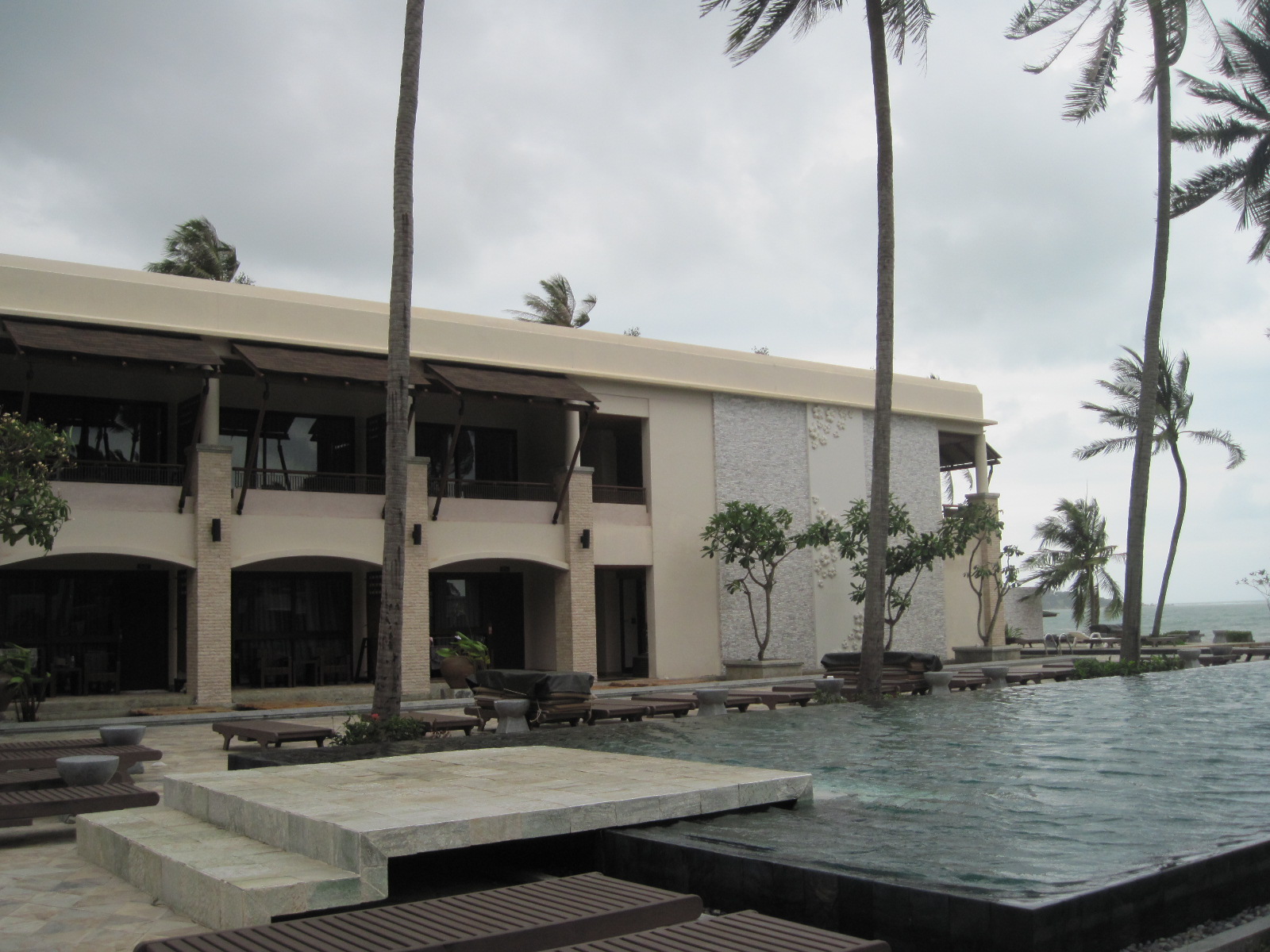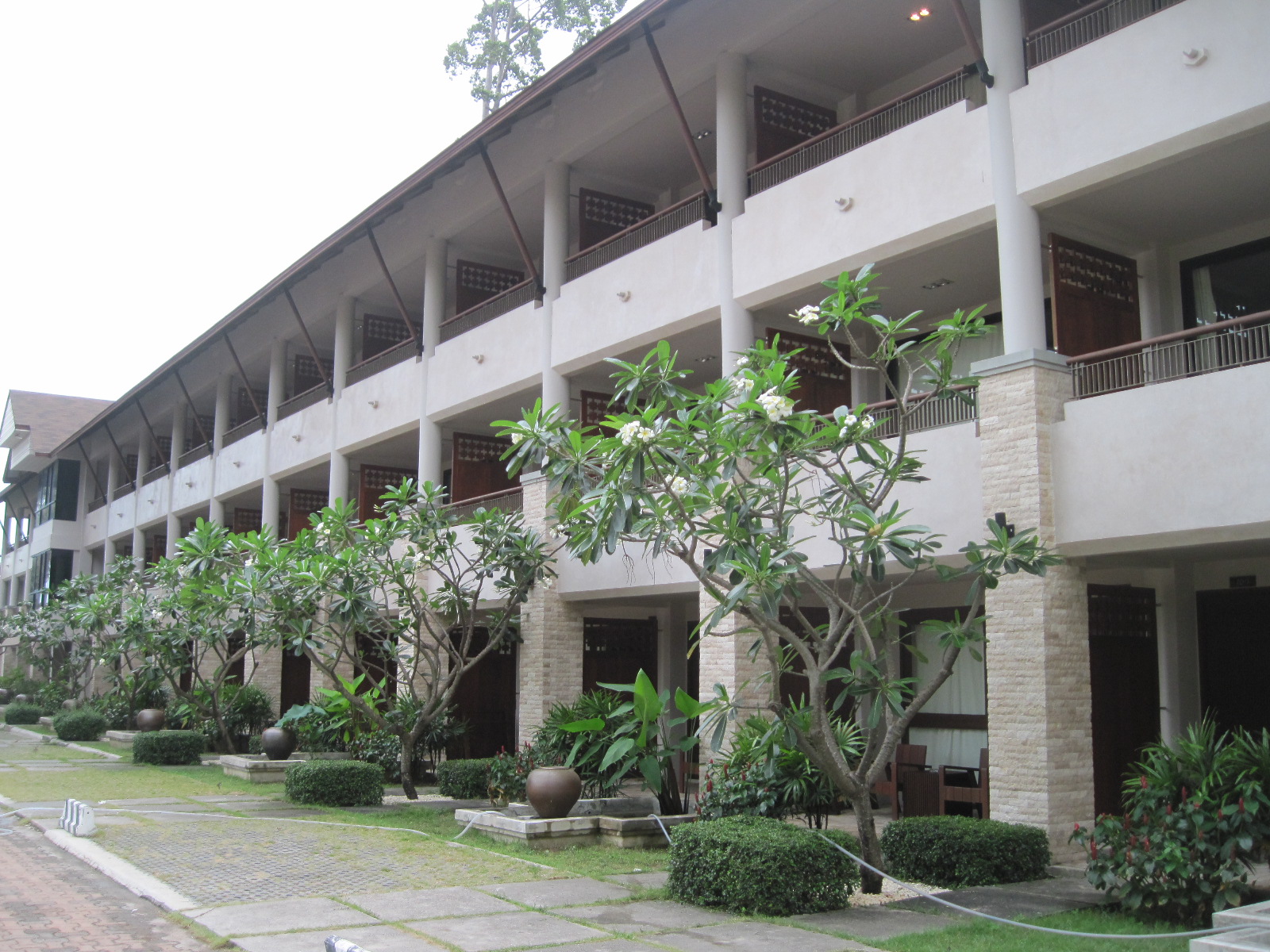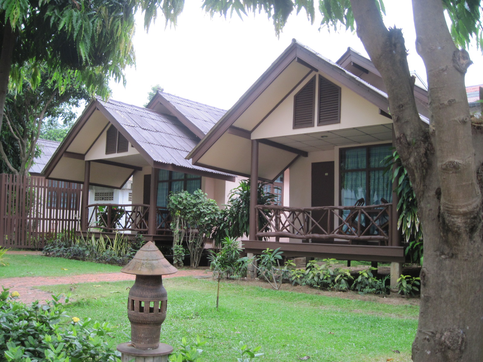 Modernes Hotel mit Zimmern im Haupthaus und in Bungalows.