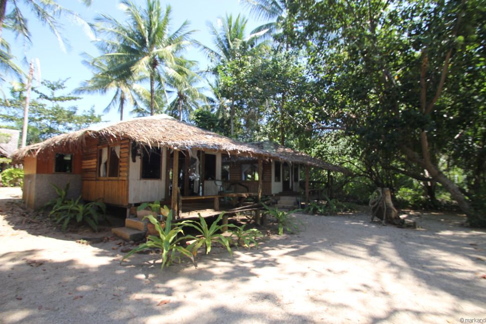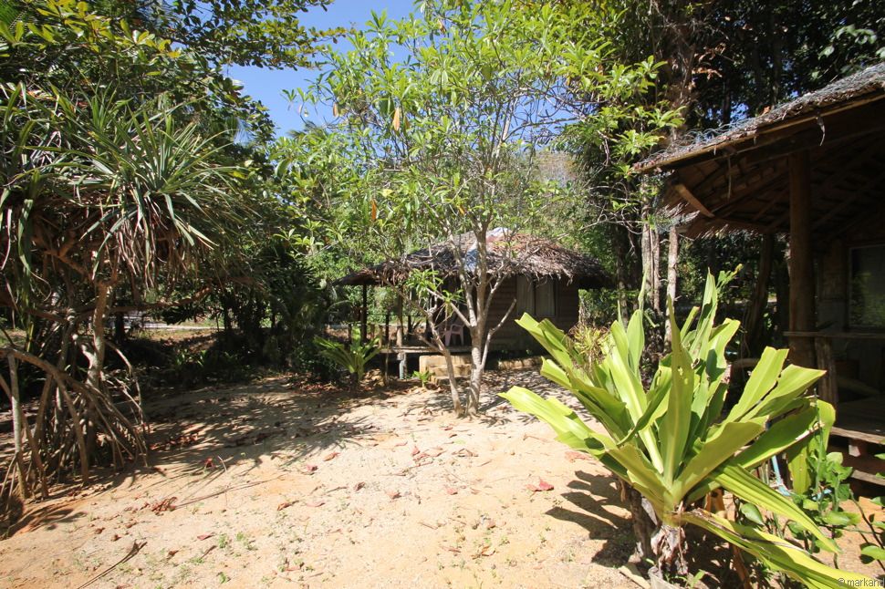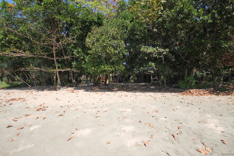 Einige Bungalows hinter dichtem Grün versteckt am Strand. Deine Alternative zu Amazon & Co.: