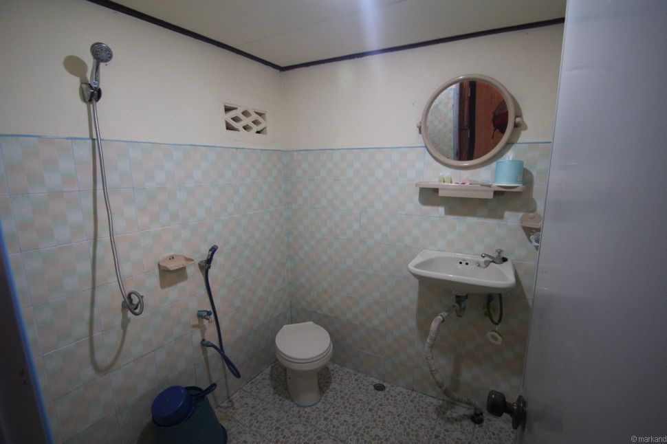 Die weißen Steinbungalows sind etwas älter, teurer und nicht schöner. Hier gibt es auch im Ventilatorzimmer Warmwasser und auf Wunsch AC.