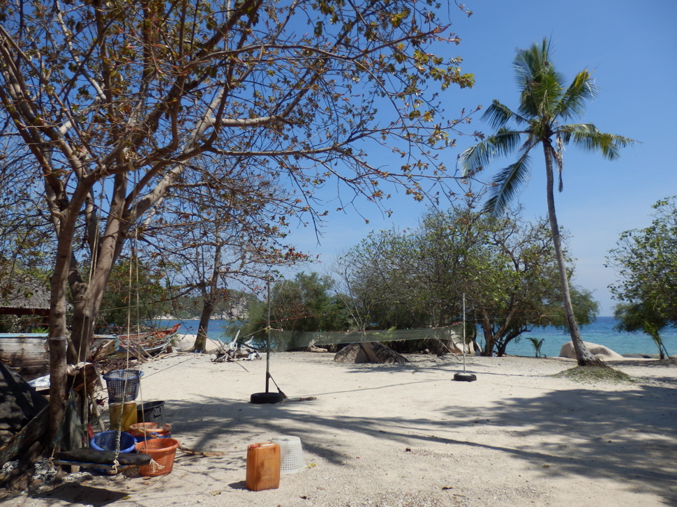 Blick von den Hütten direkt auf den Strand