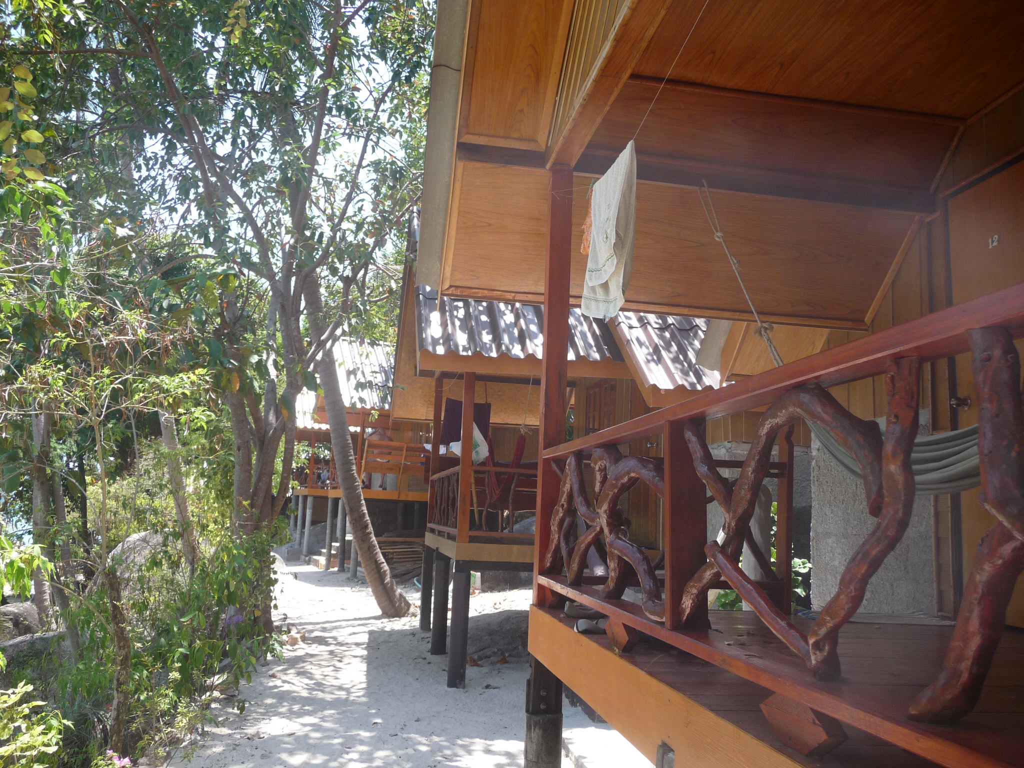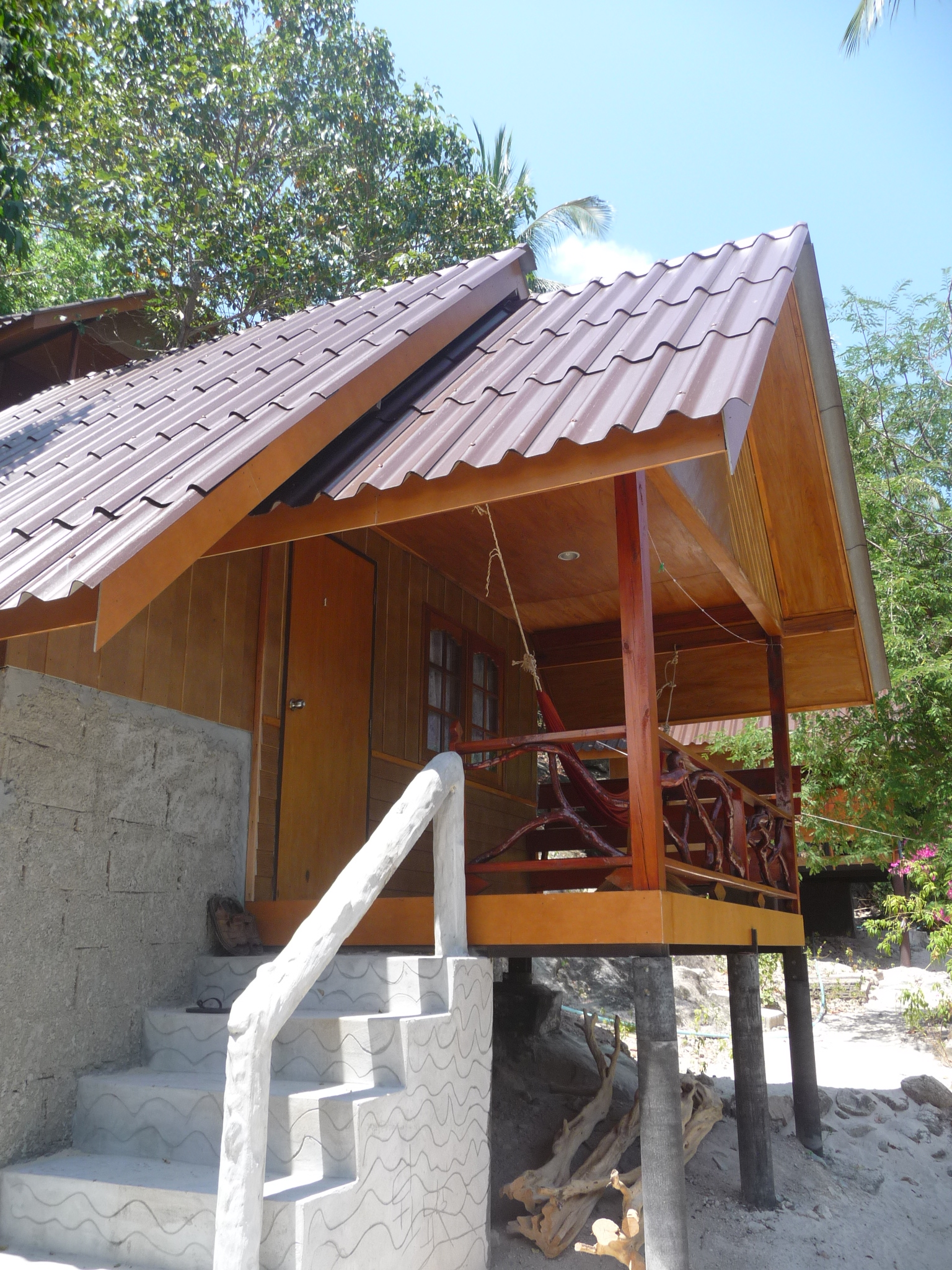 Ruhig gelege. Schöne einfache saubere Bungalows. Moskitonetze und Hängematten auf den Balkonen.