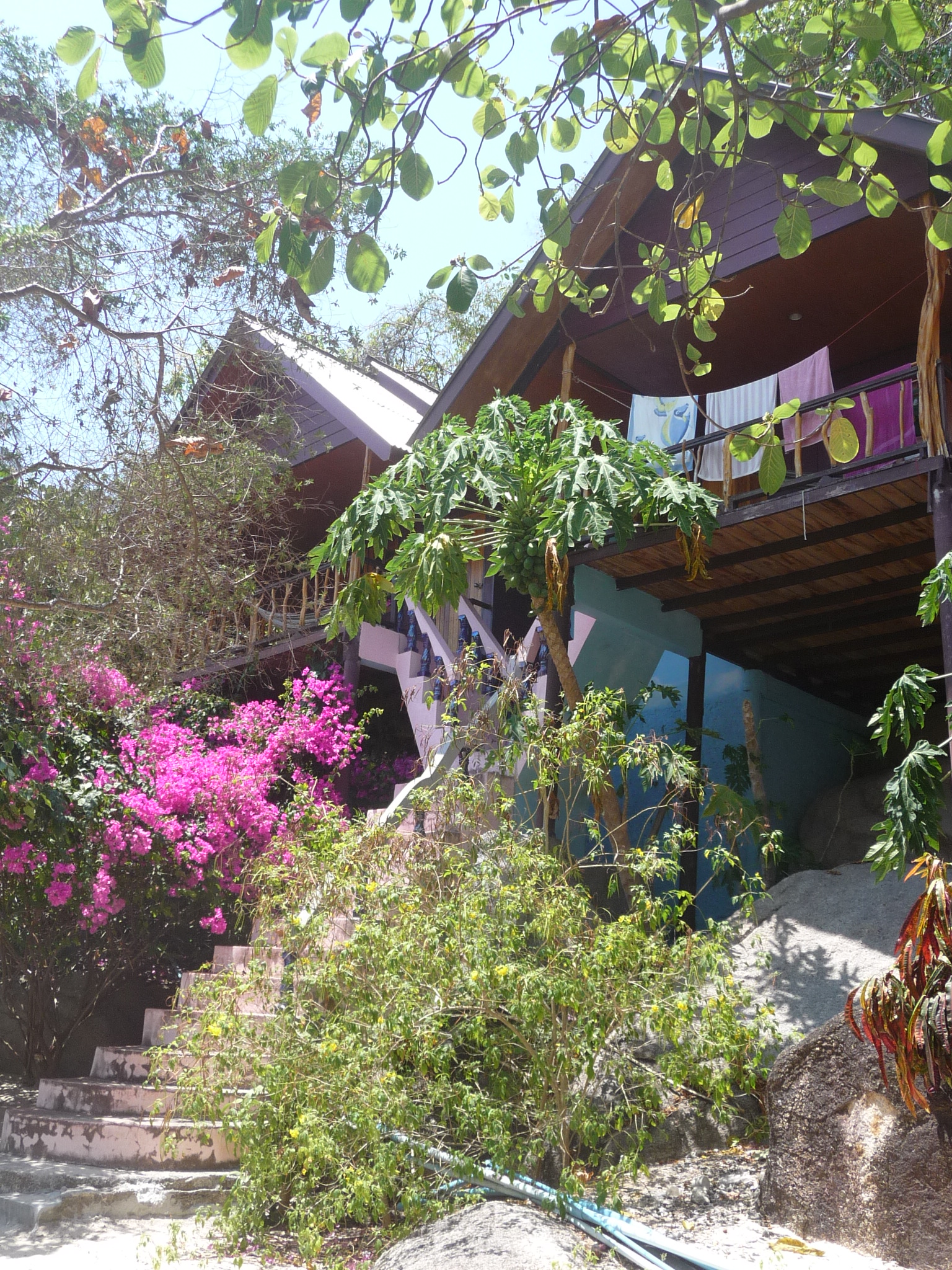 ... aber wirklich einfach. Vor allem die Bäder bedürfen einer Renovierung. Dennoch: die Lage reist es raus finden wir. 500 Baht mit Kaltwasser, 600 Baht mit Warmwasser. Für alle ohne Ansprüche.