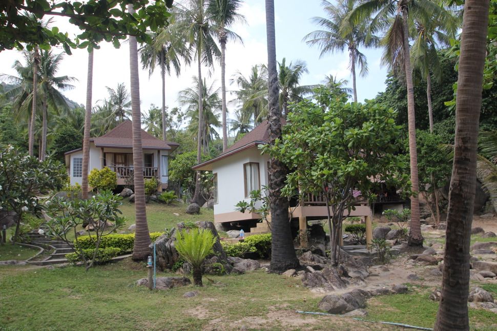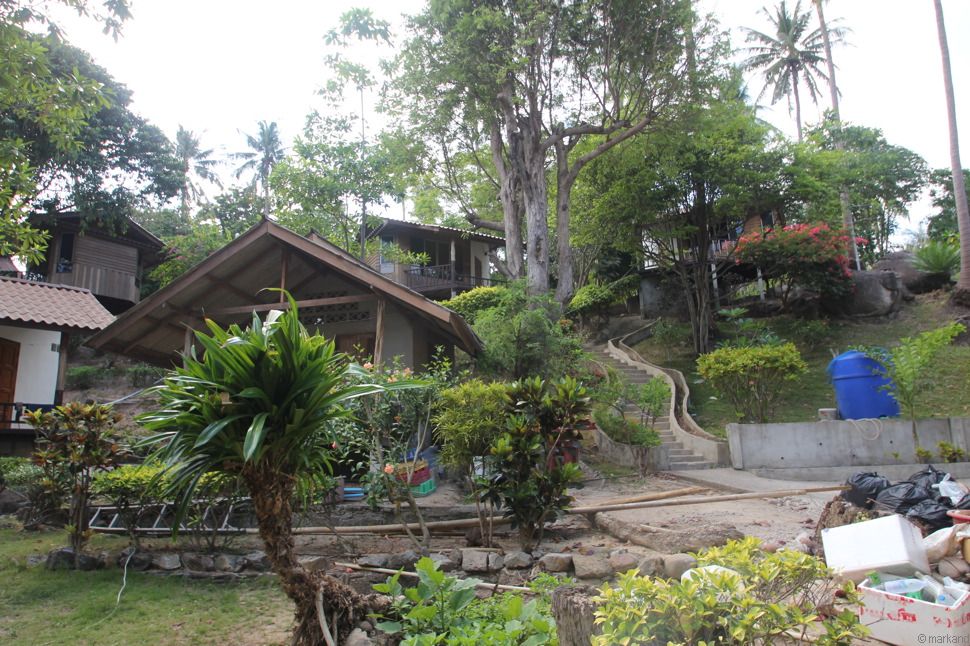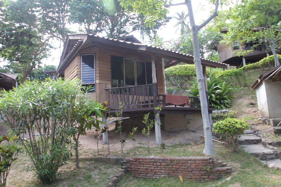 Die sauberen Bungalows liegen alle im Hang, schön weit auseinander. Es gibt auch größere Hütten für Familien. Allerdings hier aufgepasst: nicht alle haben kleinkindergeeignete Geländer um die Terrasse.
